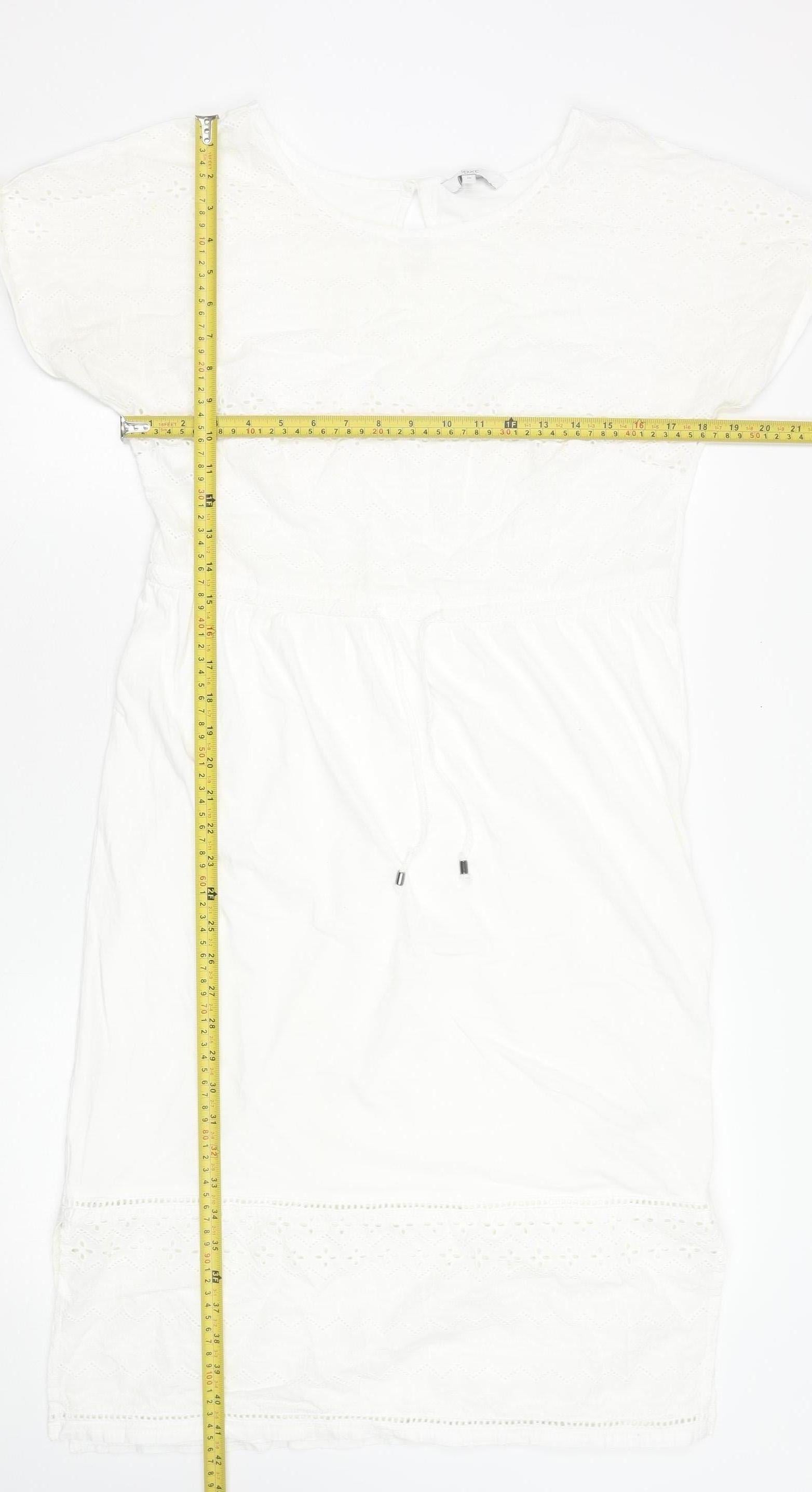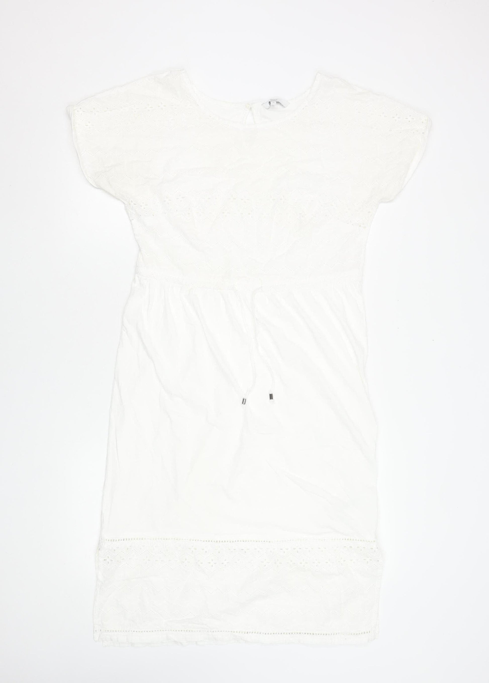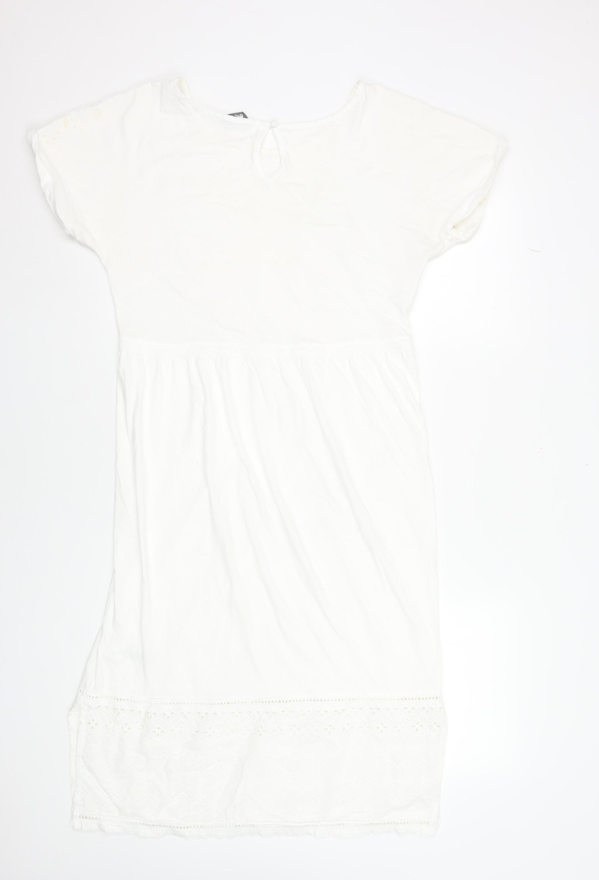 Next Women White Cotton Knee Length Shift Dress Size 10