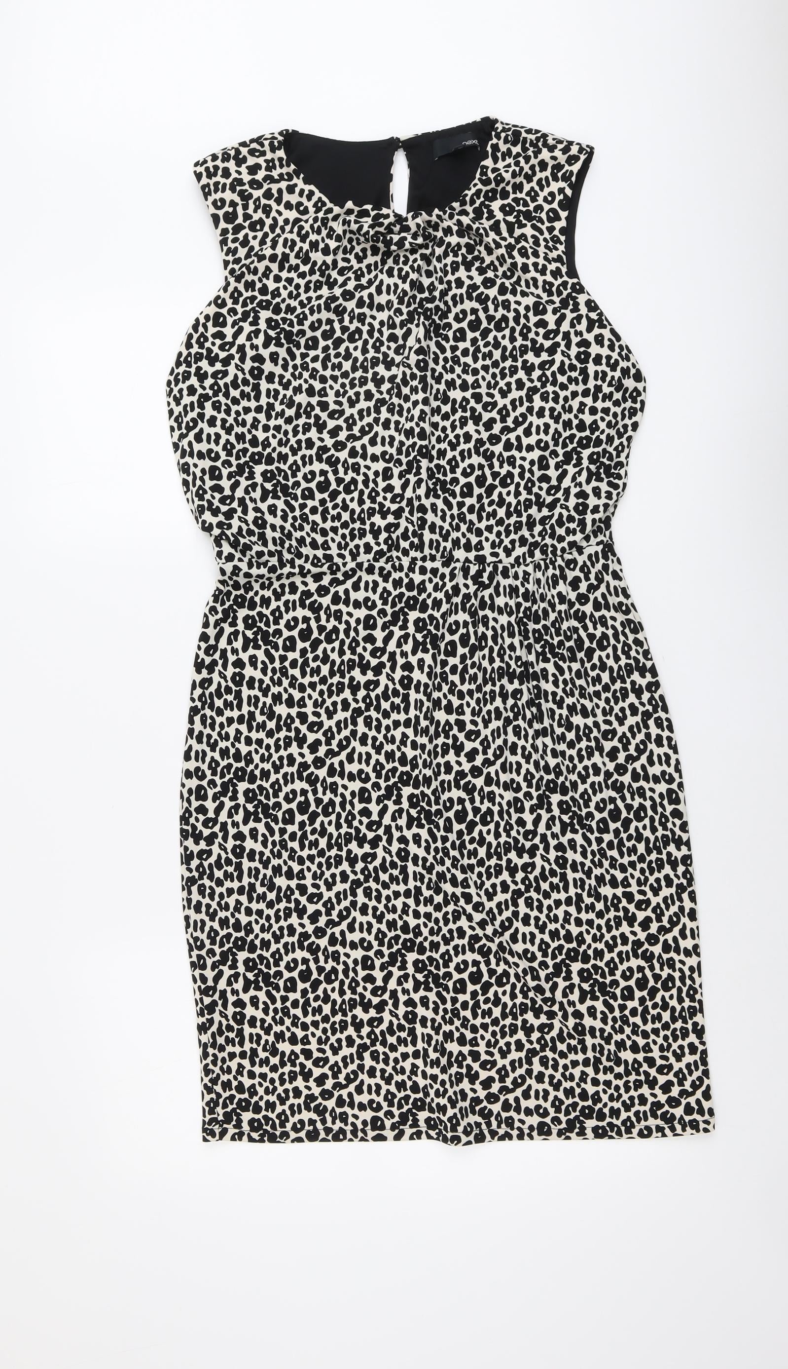 NEXT Womens Beige Animal Print Polyester Pencil Dress Size 14 Round Neck Button - Leopard Pattern