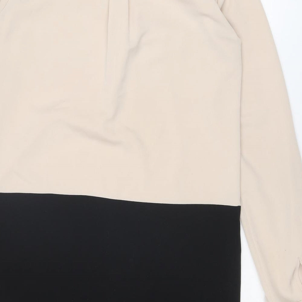 NEXT Womens Beige Colourblock Polyester Shirt Dress Size 8 Round Neck Button
