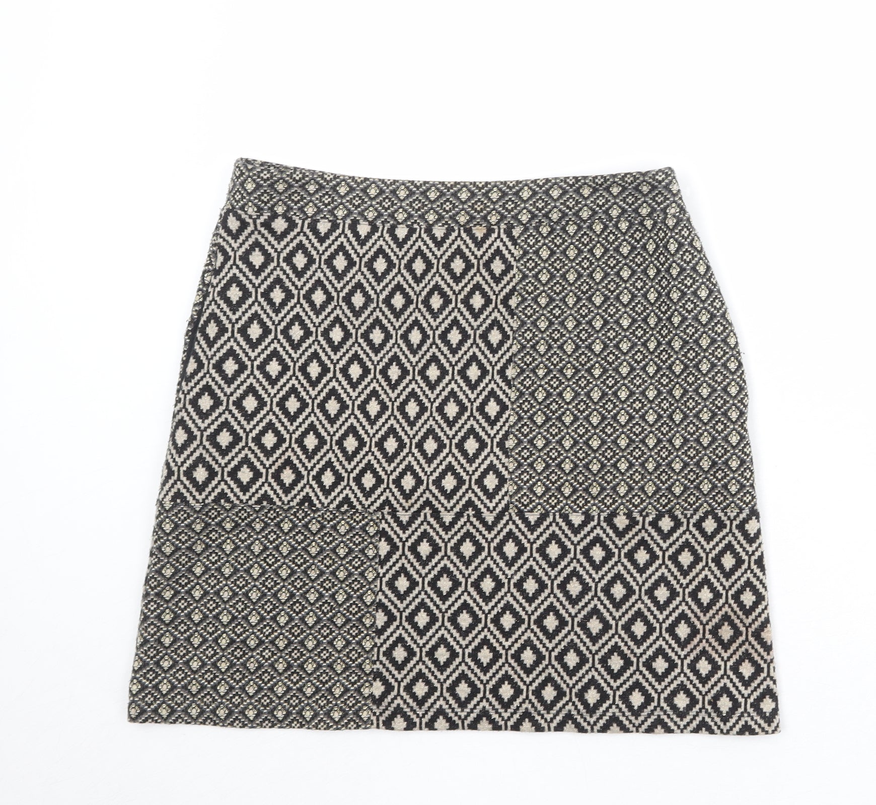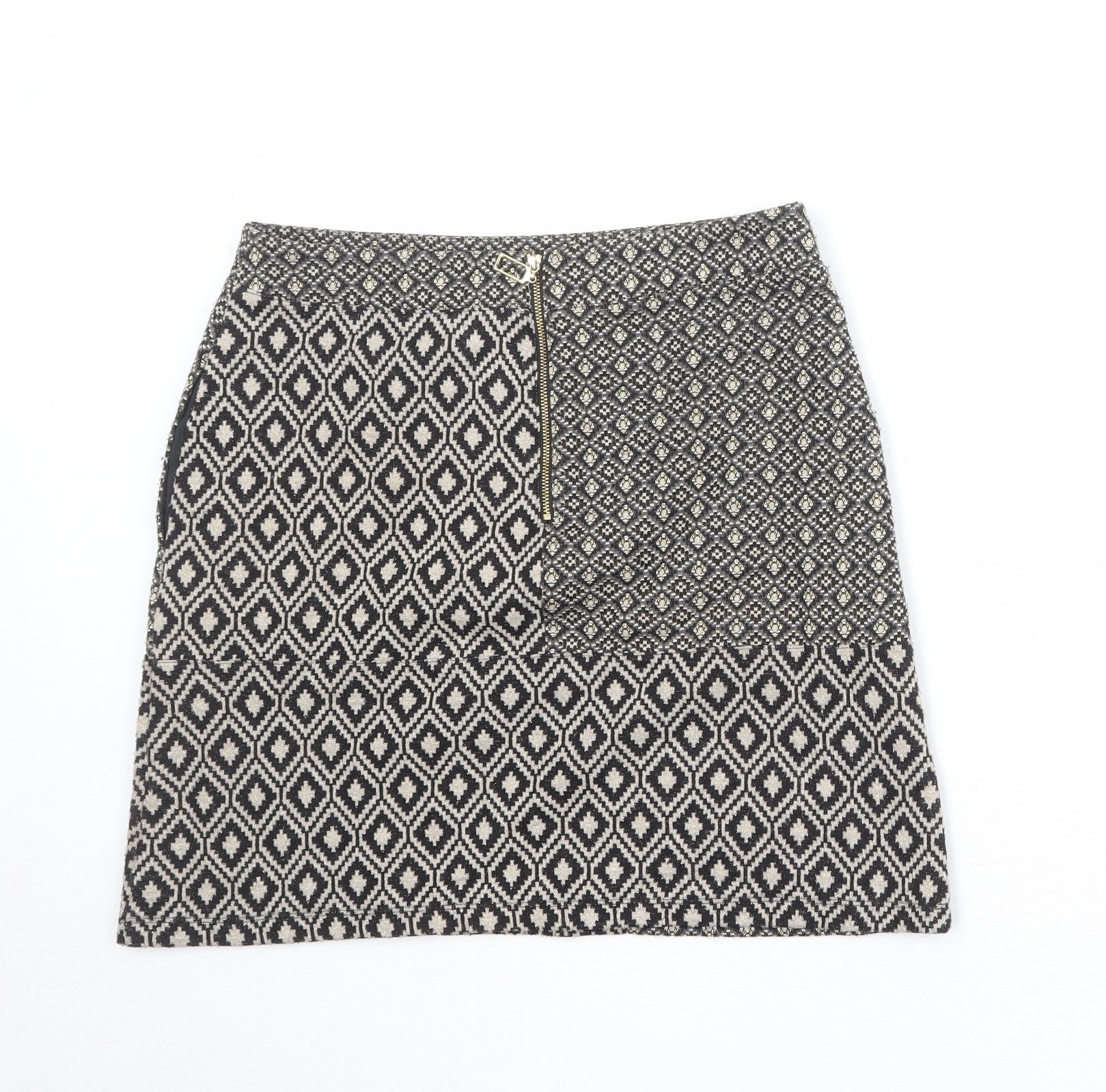 NEXT Womens Beige Geometric Polyester A-Line Skirt Size 10 Zip