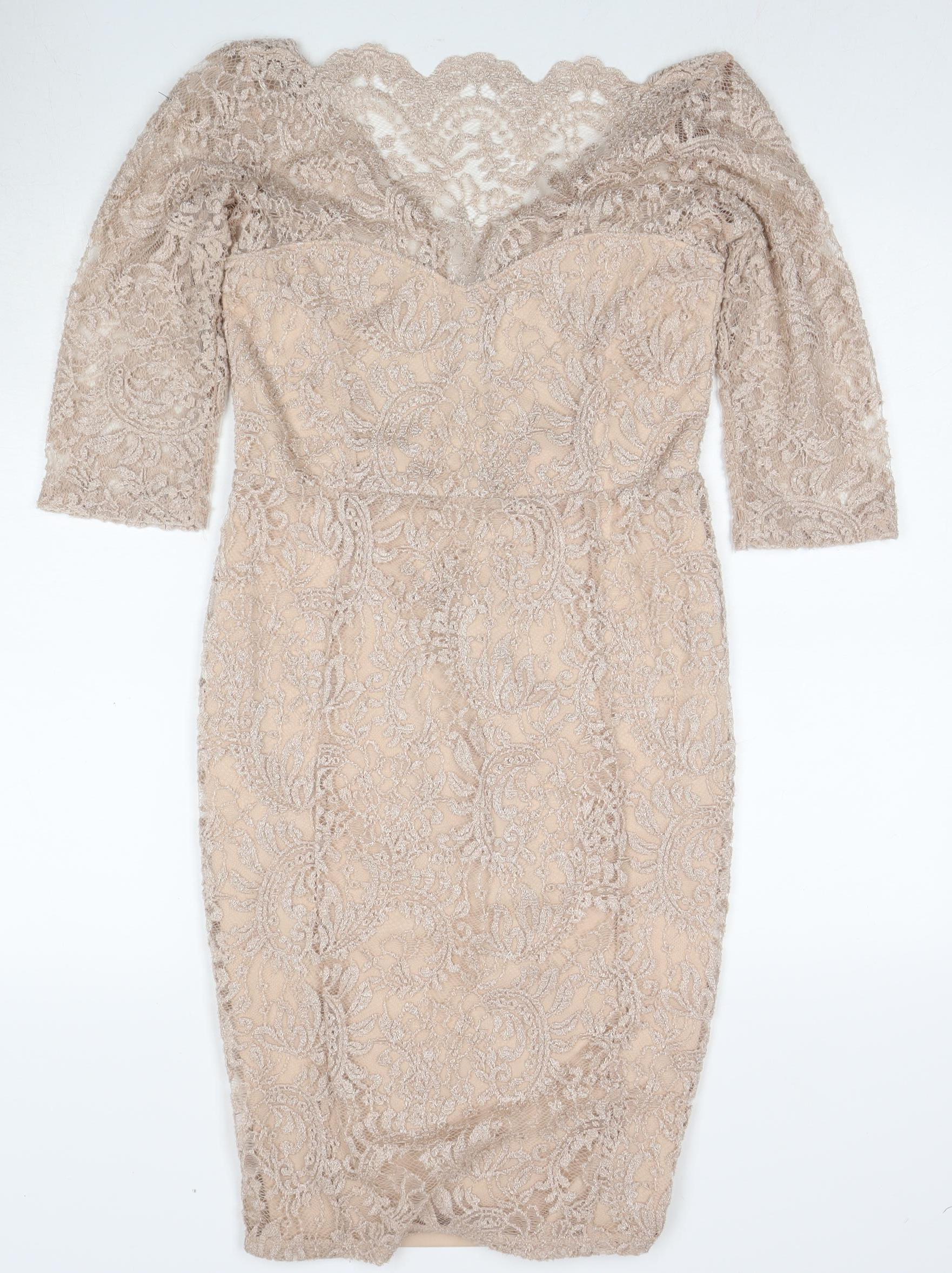 Next Women's Beige Lace Bodycon Midi Dress