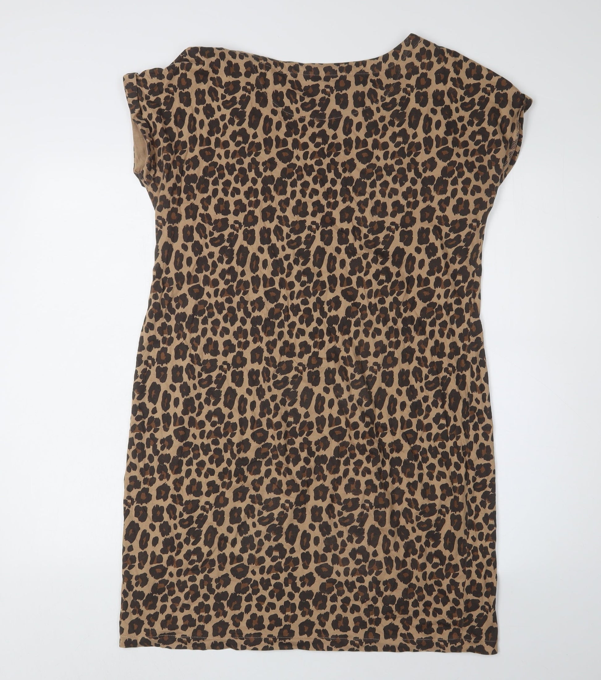 Next Women's Beige Leopard Print Bodycon Dress Size 10