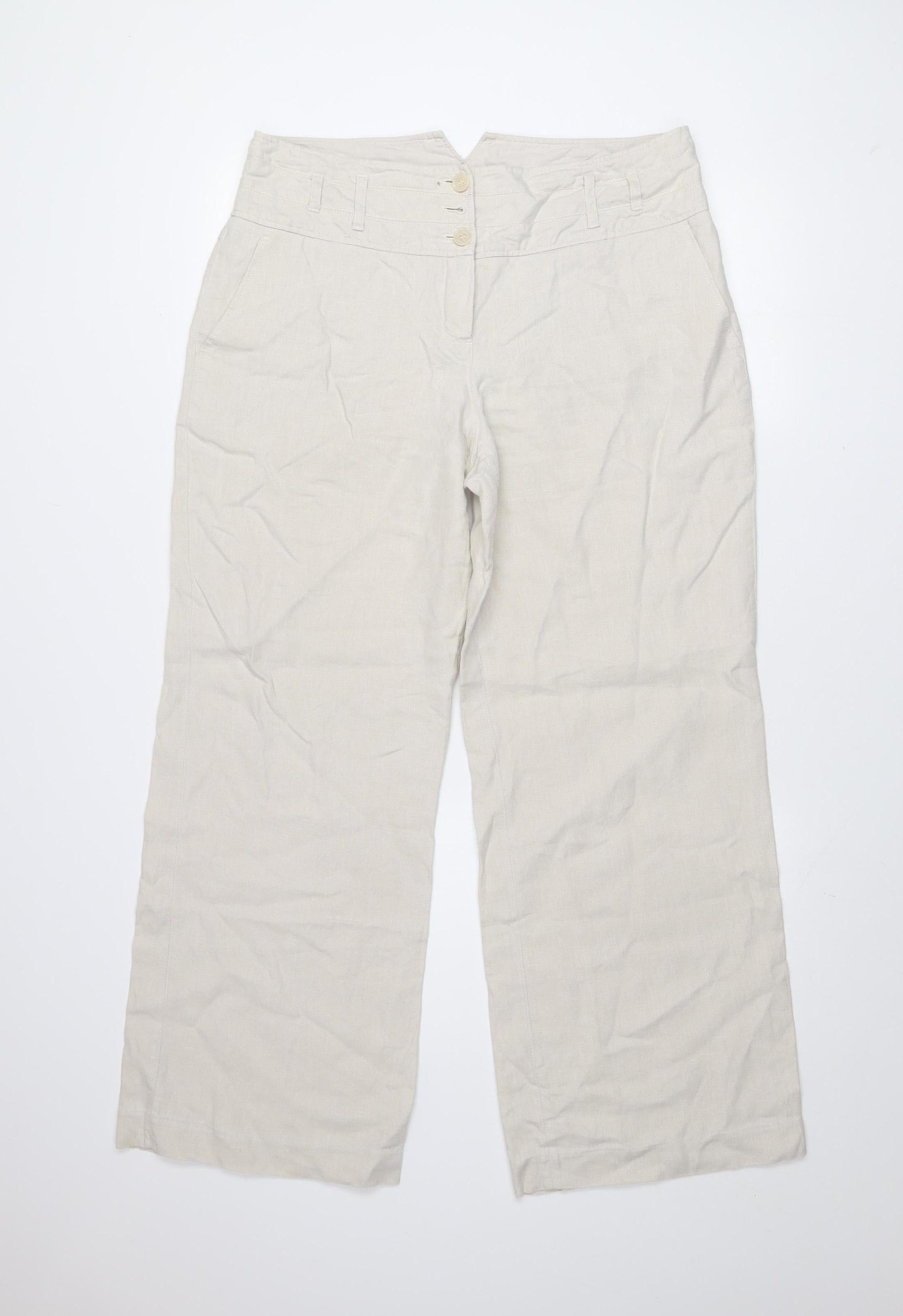 Next Womens Beige Linen Wide-Leg High Rise Trousers Size 14
