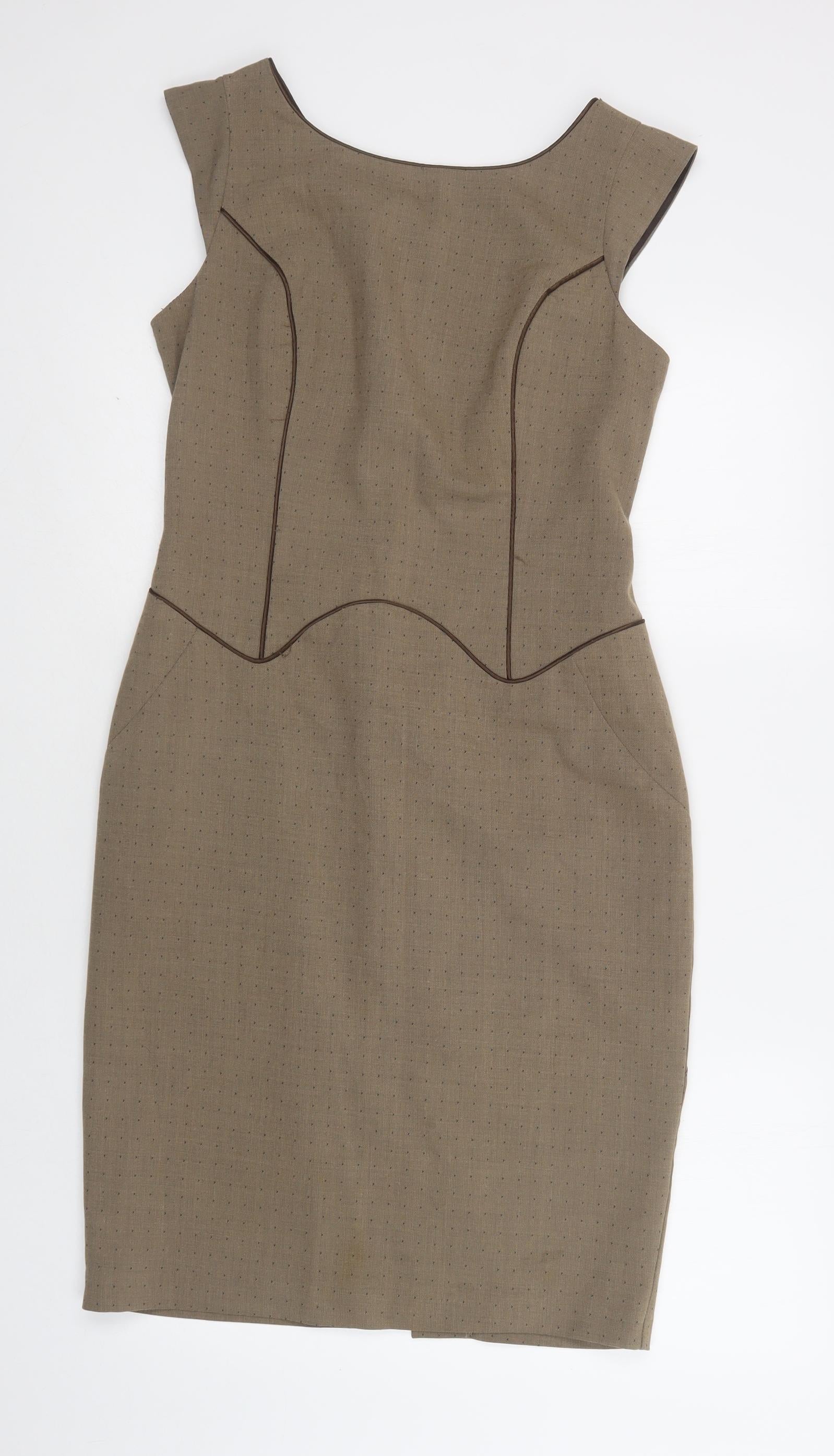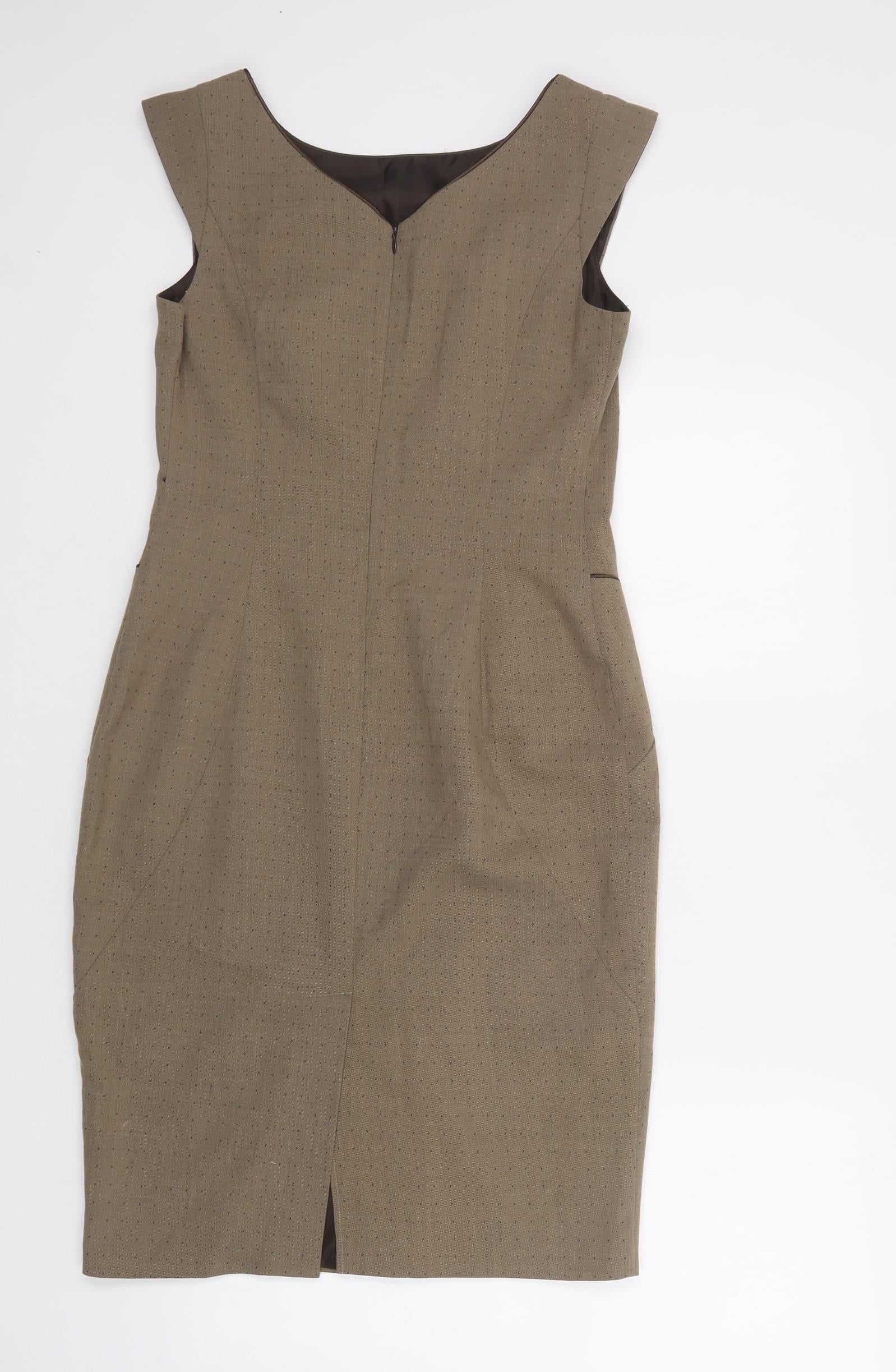 NEXT Womens Beige Polka Dot Polyester Pencil Dress Size 10 Round Neck Zip