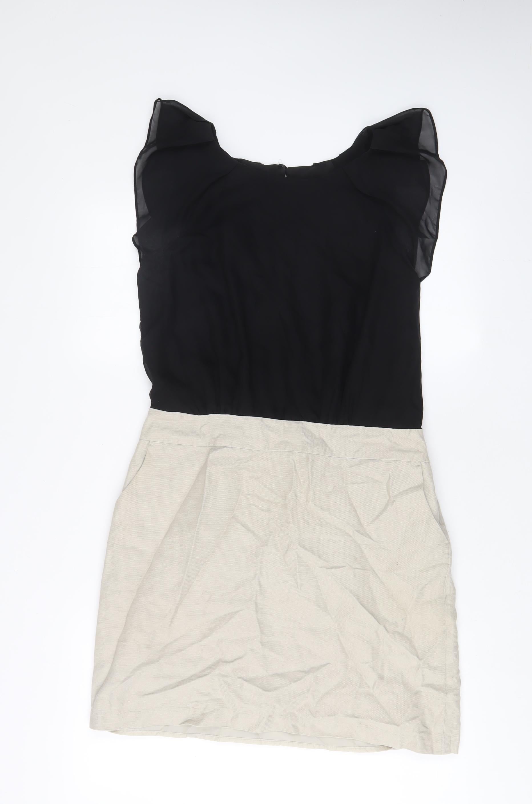 NEXT Womens Beige Polyester Sheath Size 12 Scoop Neck Button
