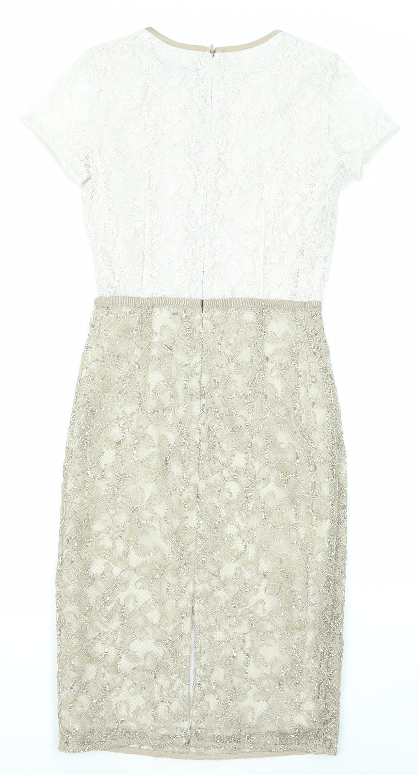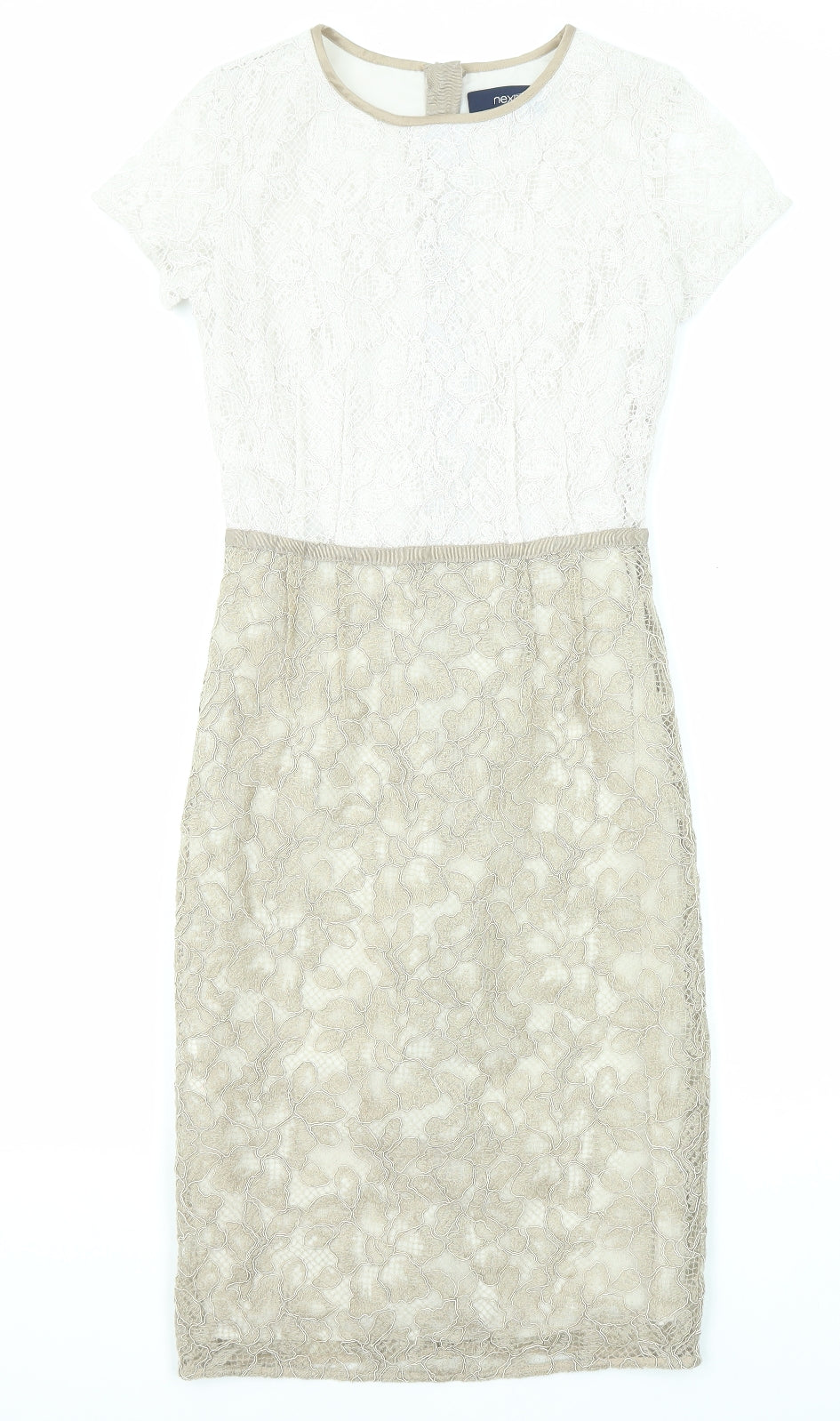 NEXT Womens Beige Polyester Sheath Size 6 Round Neck Zip