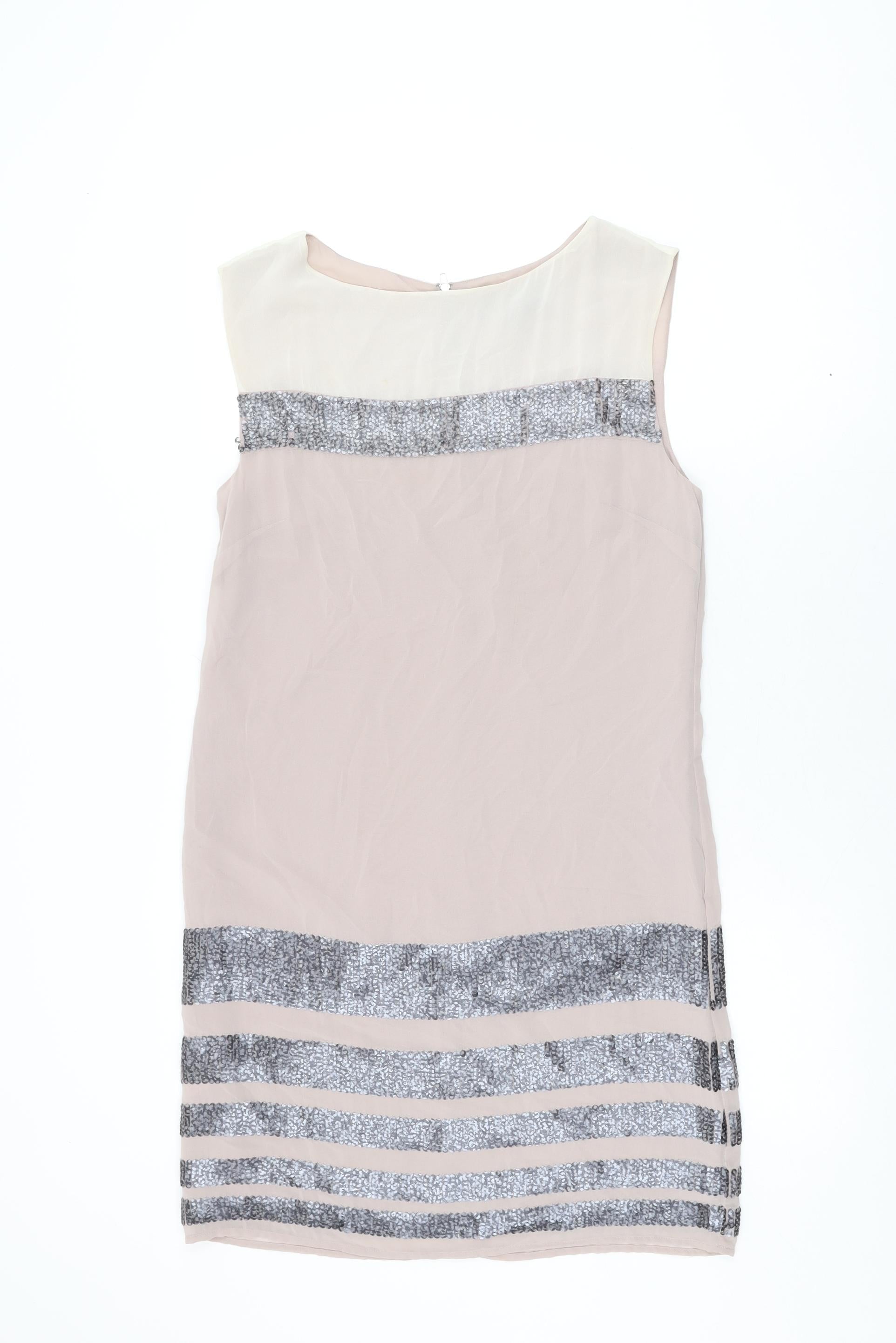 NEXT Womens Beige Polyester Shift Size 10 Round Neck Zip