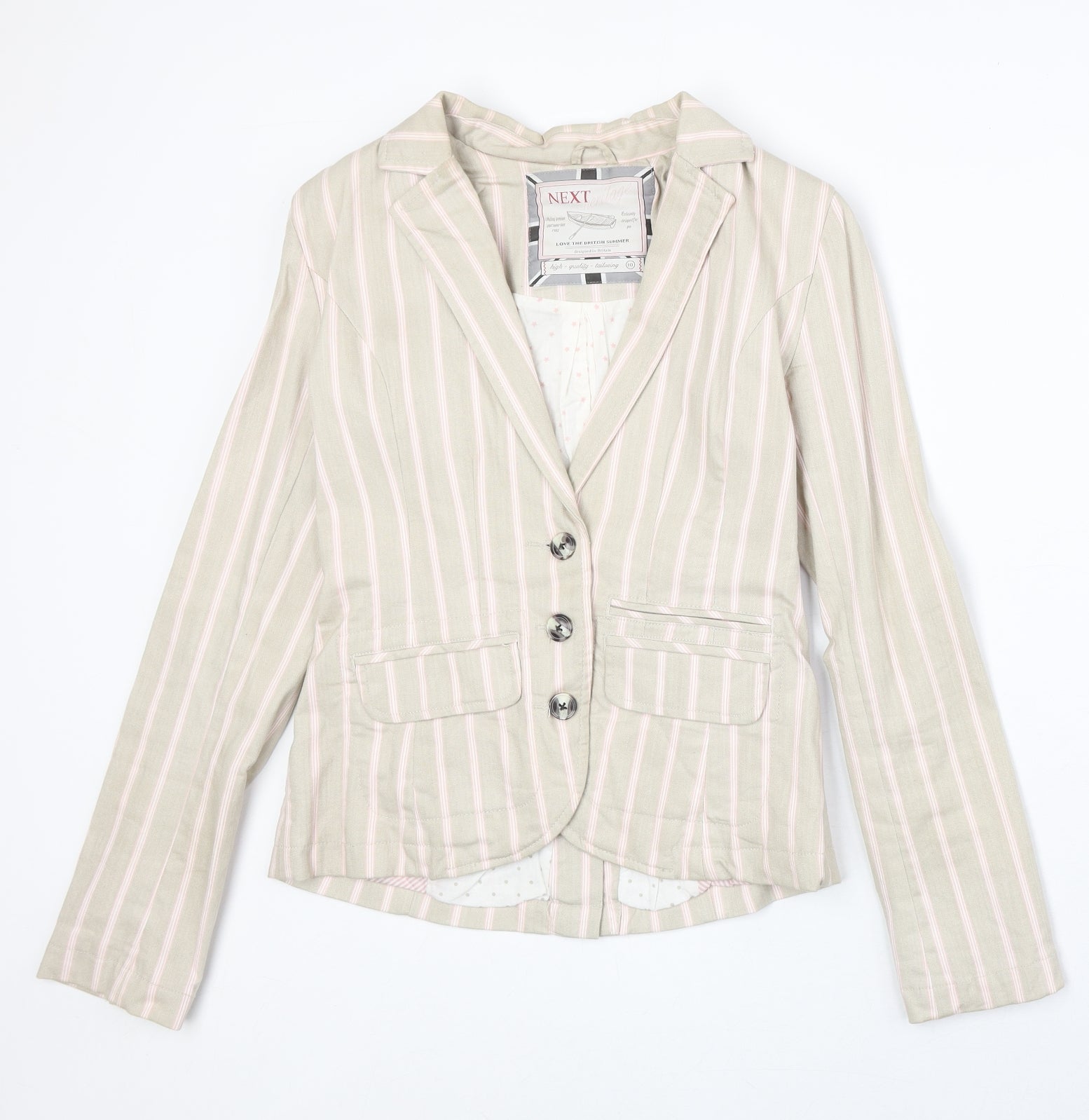 NEXT Womens Beige Striped Cotton Jacket Blazer Size 10