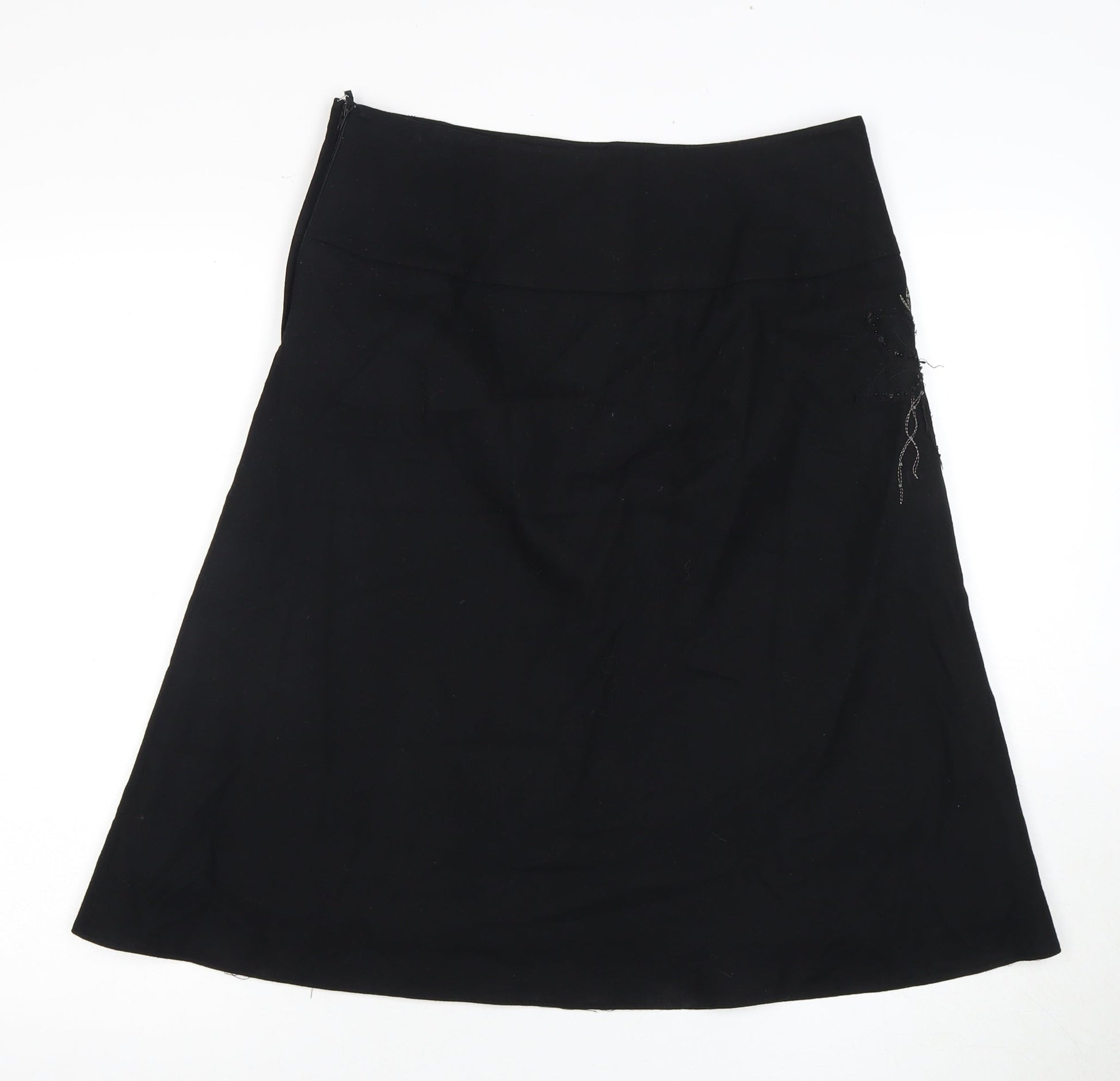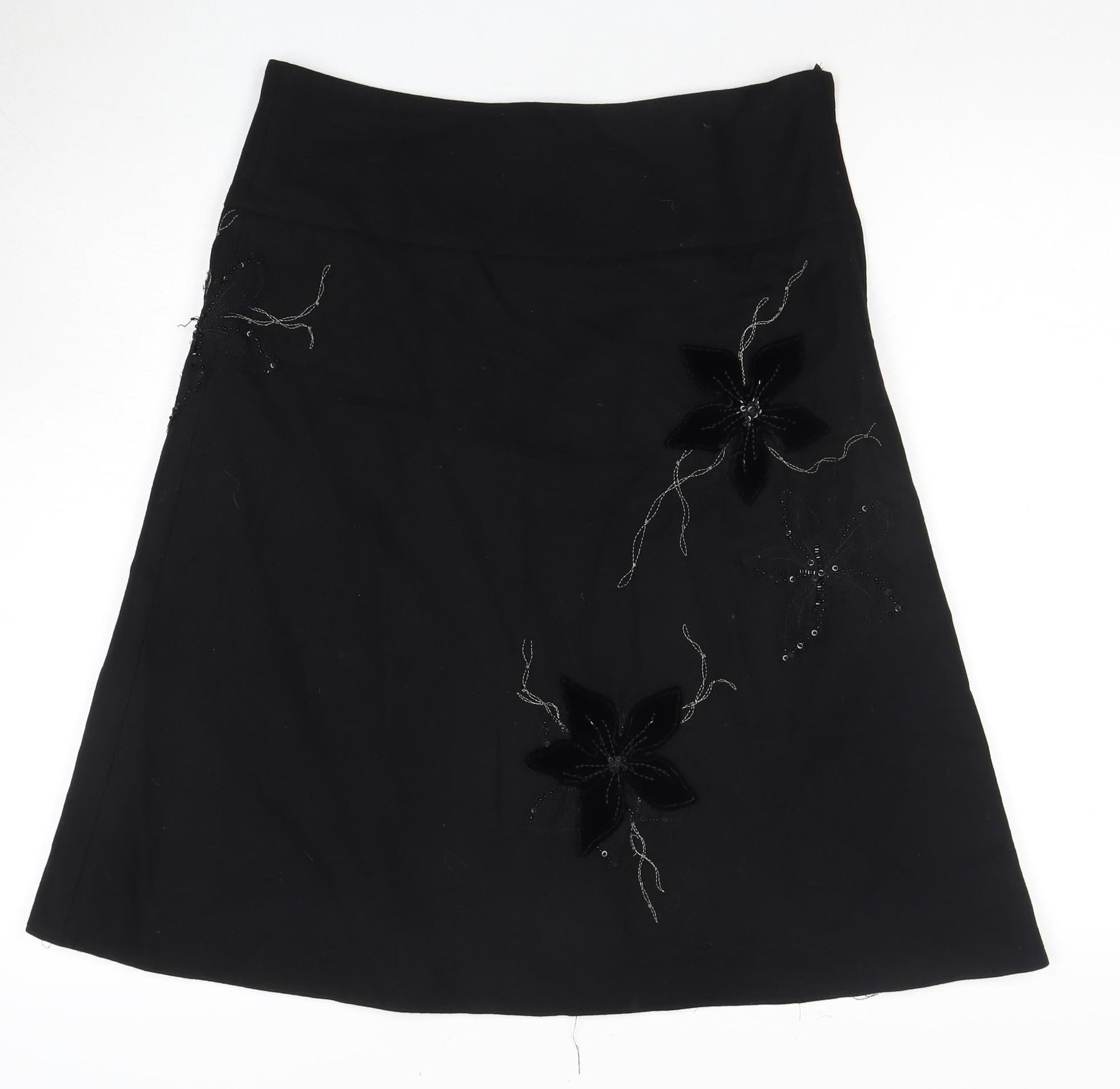 Next Women's Black A-Line Skirt Size 10 Embroidered Wool