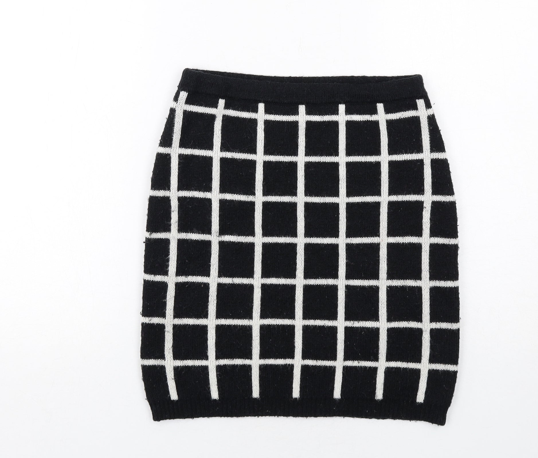 NEXT Womens Black Check Nylon A-Line Skirt Size 8