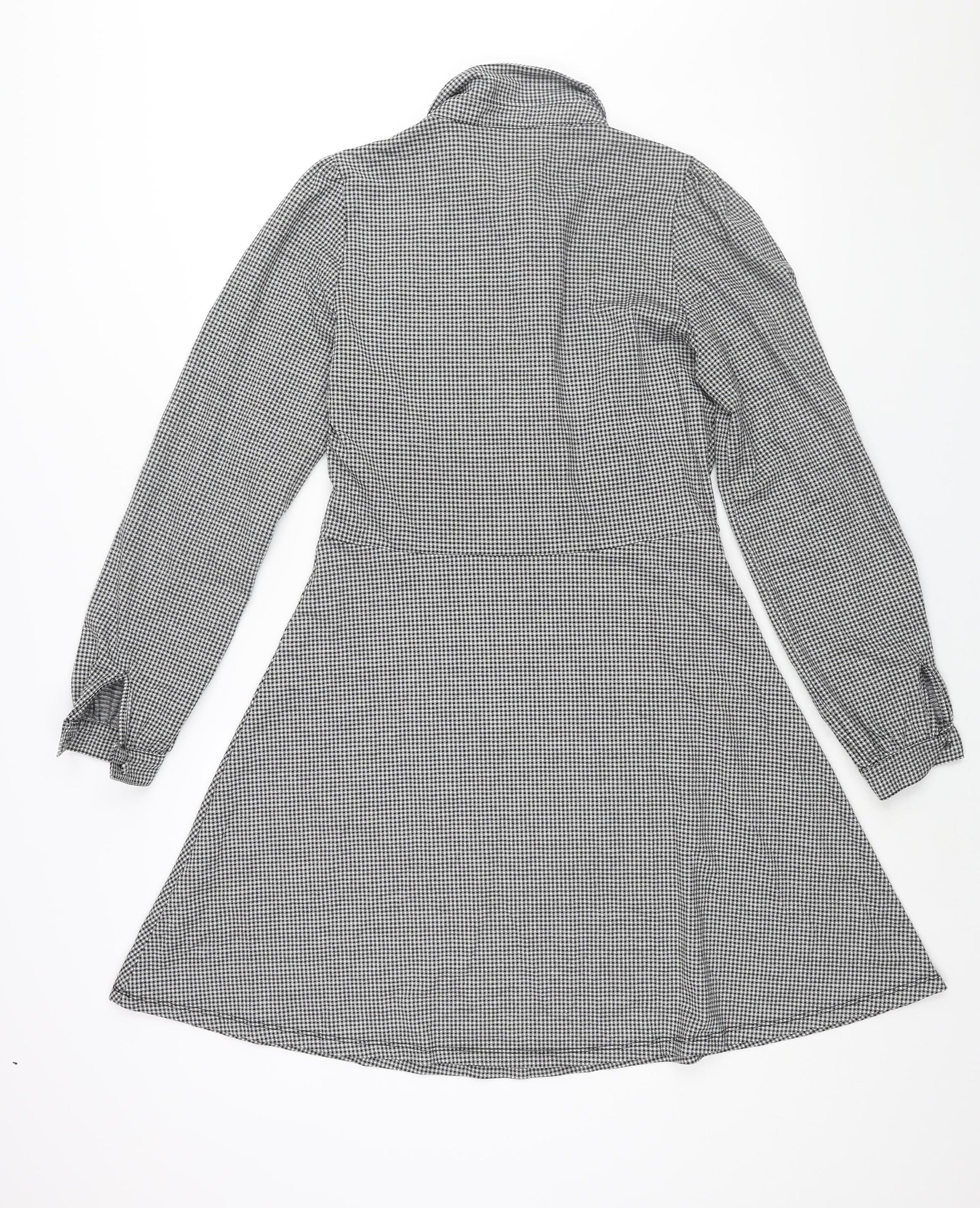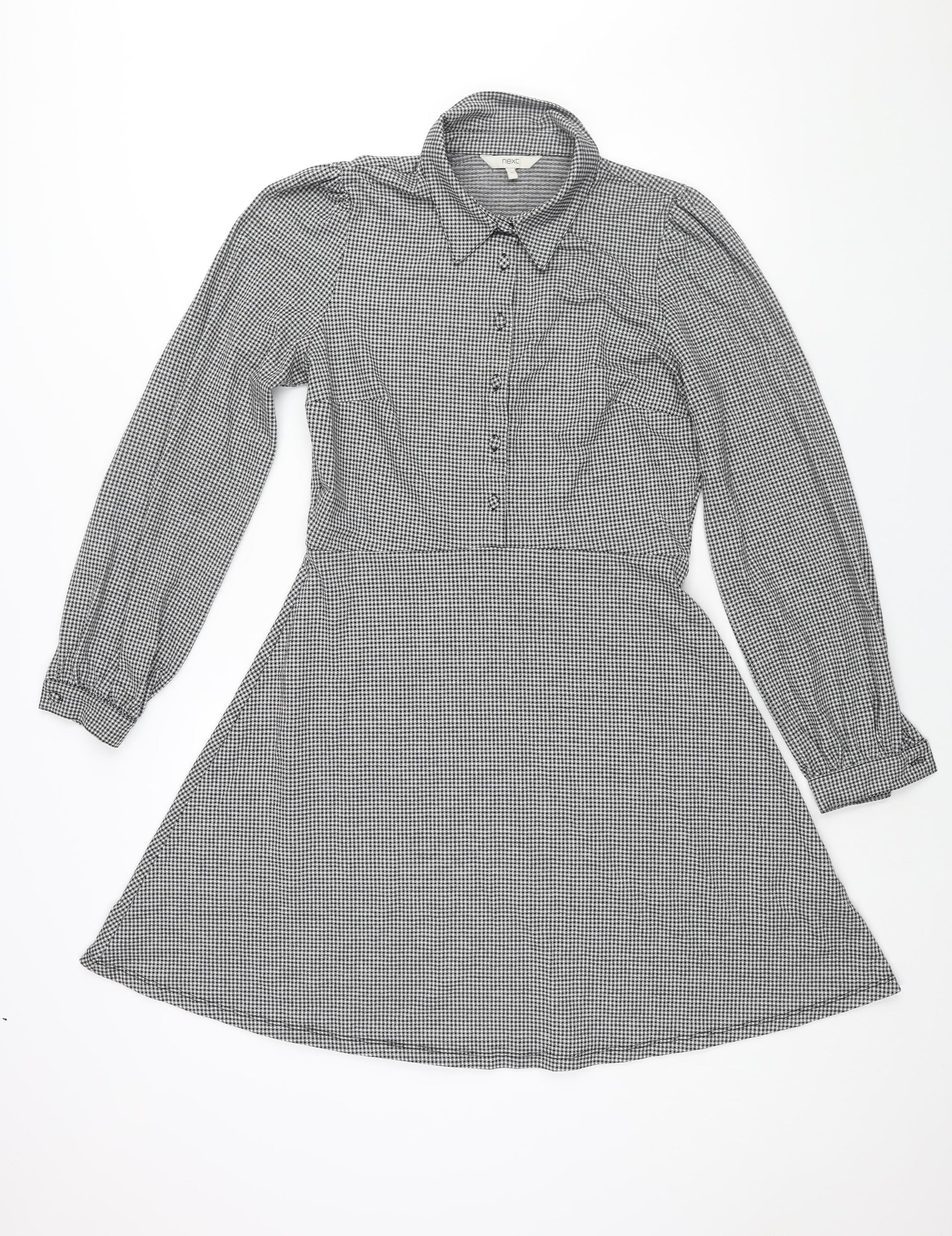 NEXT Womens Black Check Polyester A-Line Size 12 Collared Button