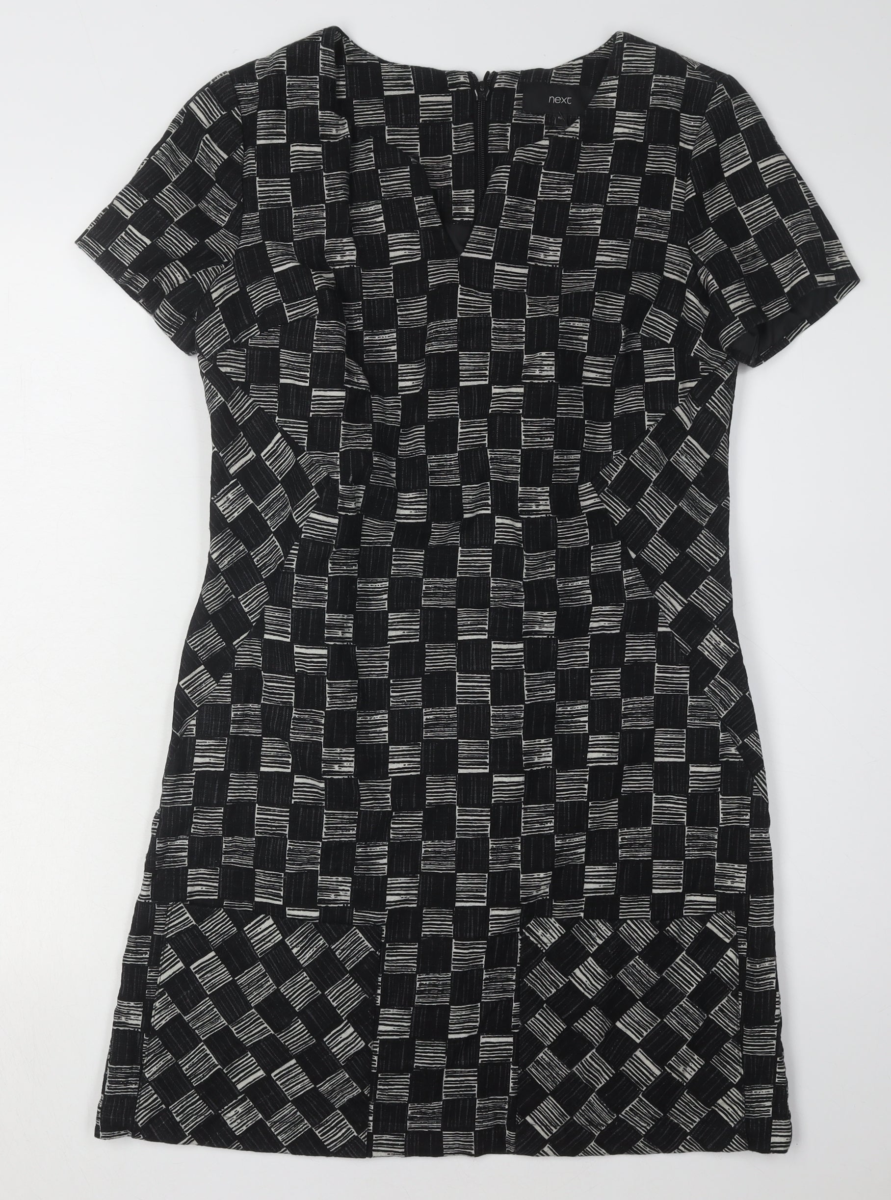 Next Women's Black Check Shift Dress, Size 8, Short Sleeve