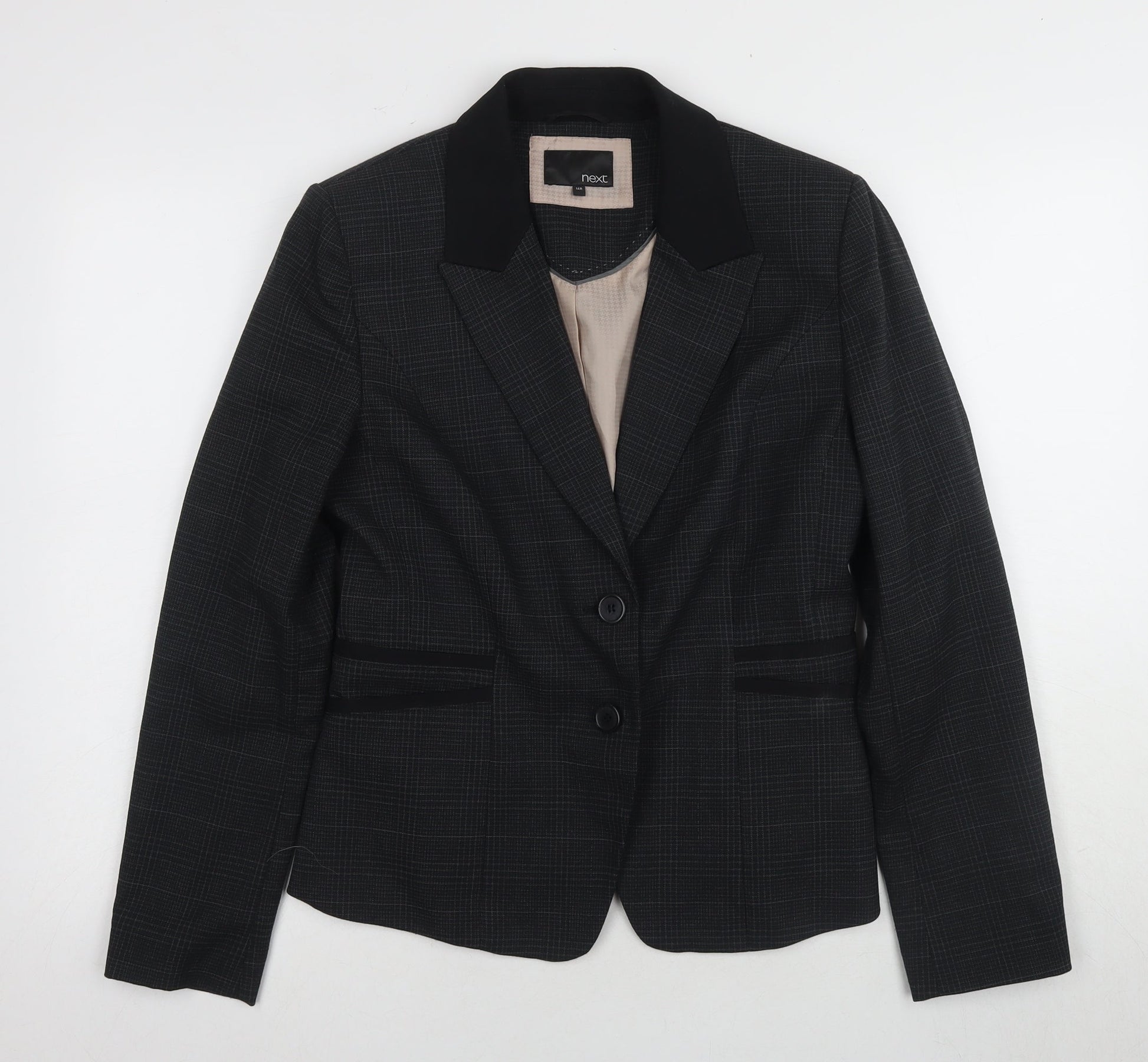 Next Women's Black Checked Blazer, Size 14, Regular Fit