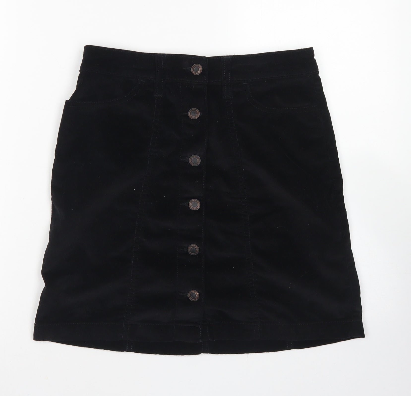 NEXT Womens Black Cotton A-Line Skirt Size 6 Button