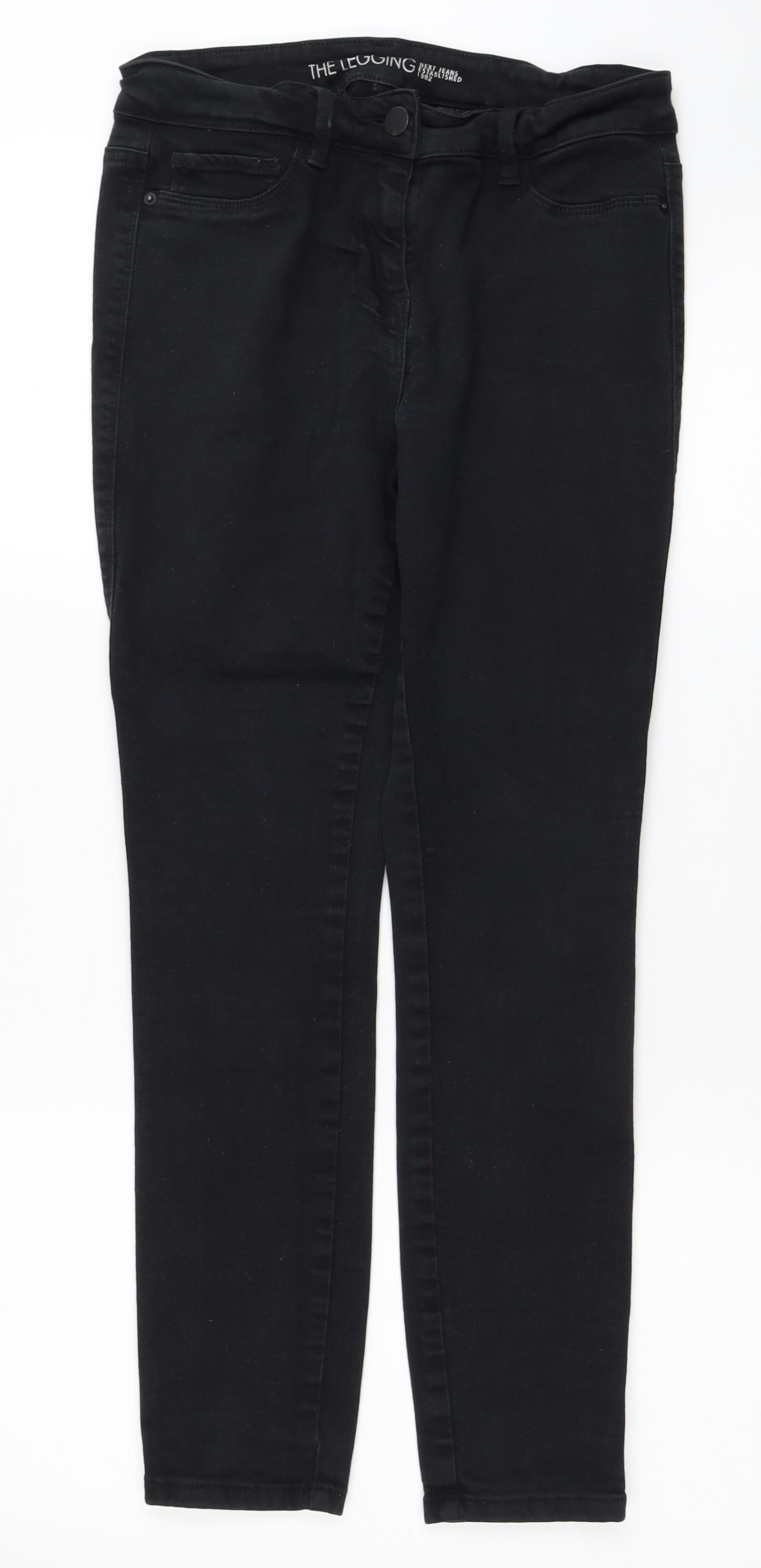 NEXT Womens Black Cotton Skinny Jeans Size 12 L24 in Regular Zip