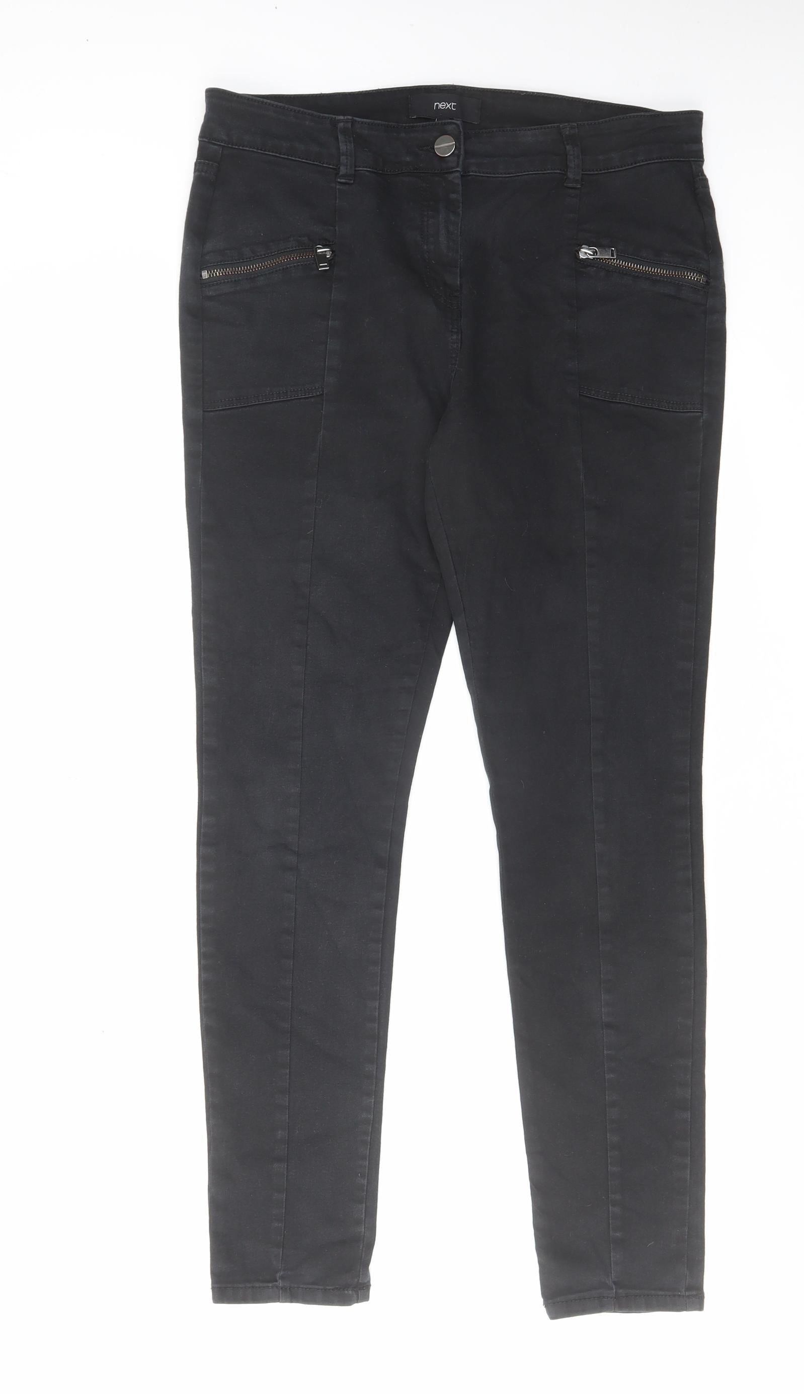 NEXT Womens Black Cotton Skinny Jeans Size 12 L29 in Regular Zip