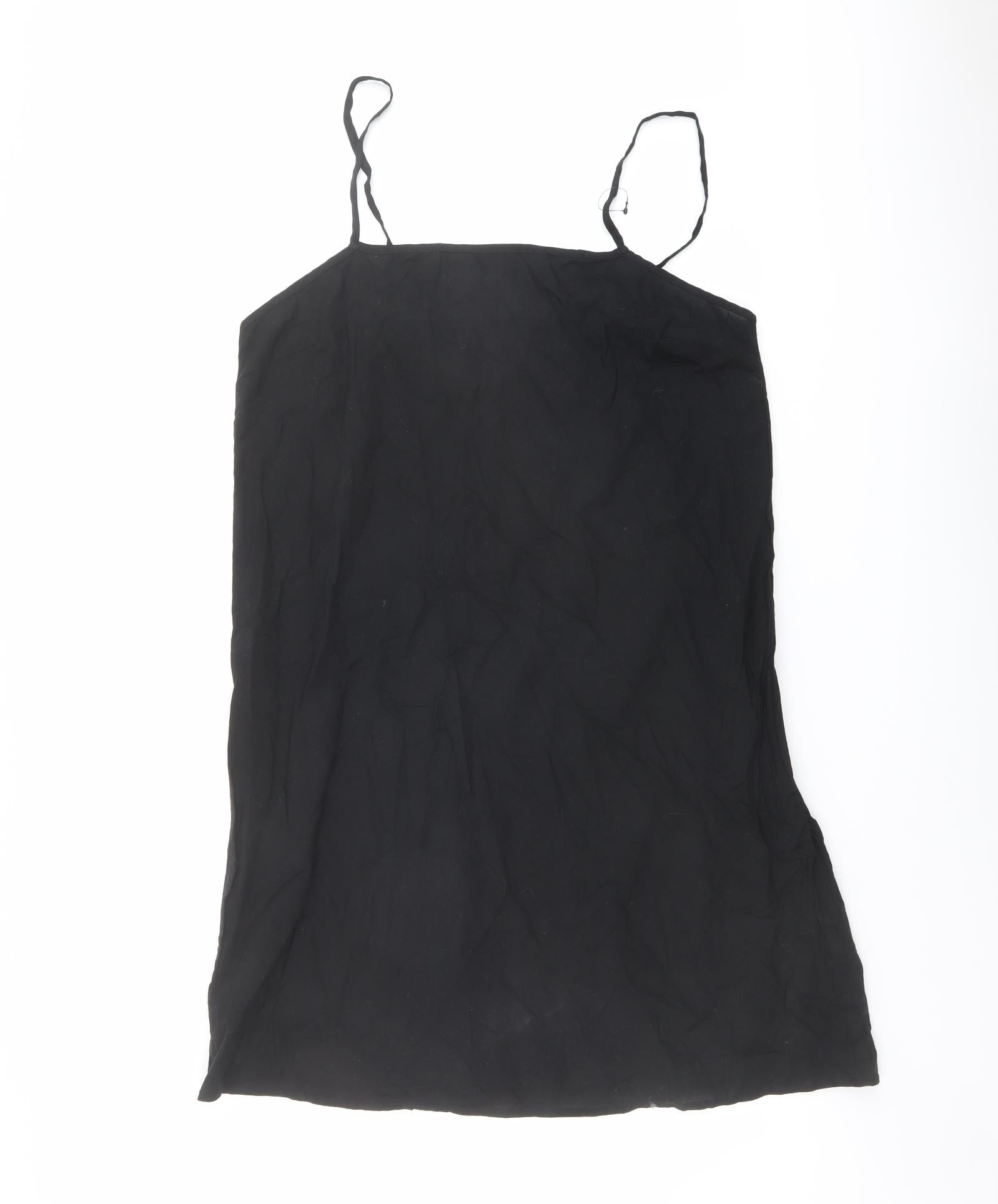 NEXT Womens Black Cotton Slip Dress Size 14 Square Neck Pullover
