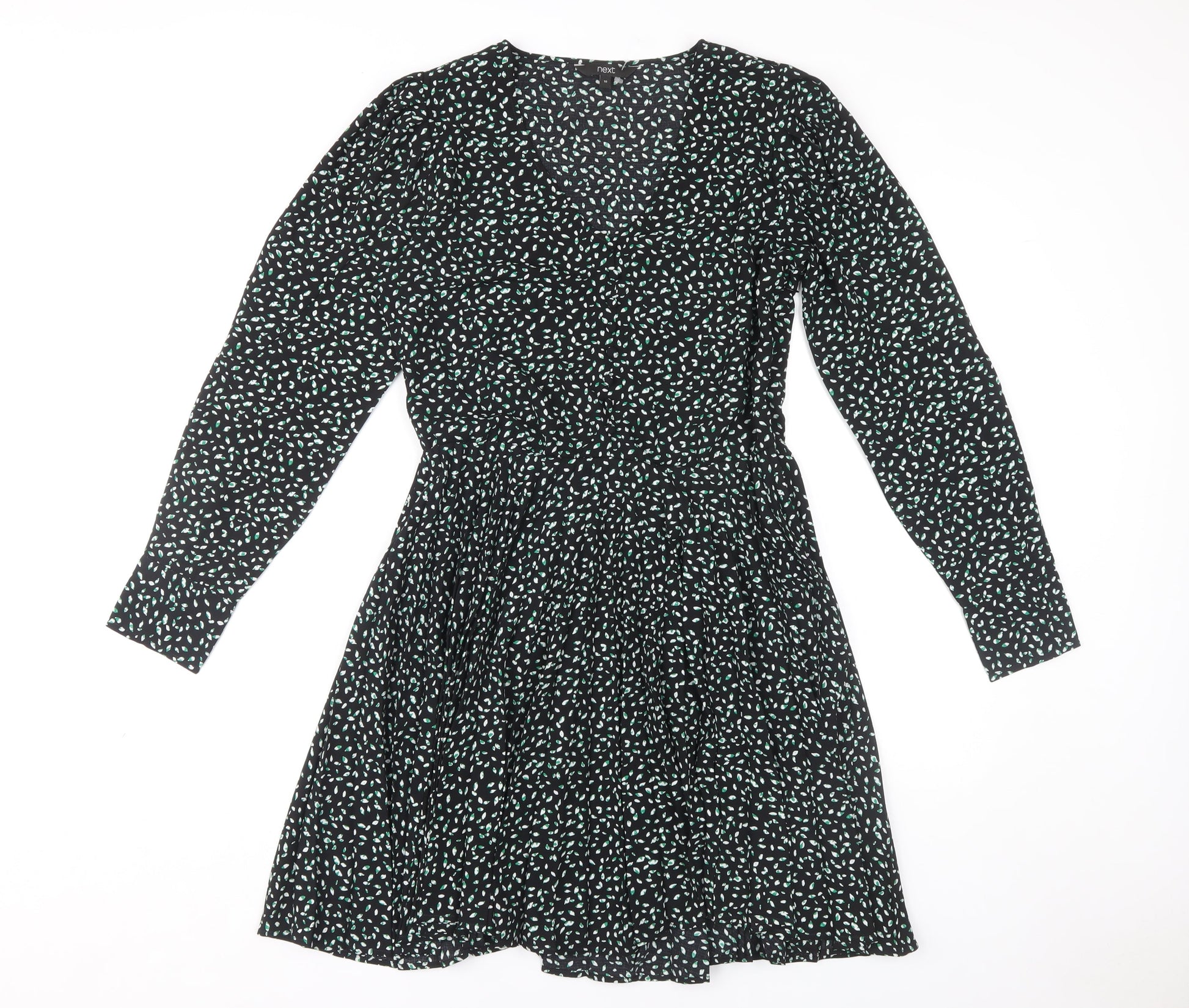 Next Women's Black Dress Size 10 Long Sleeve V-Neck