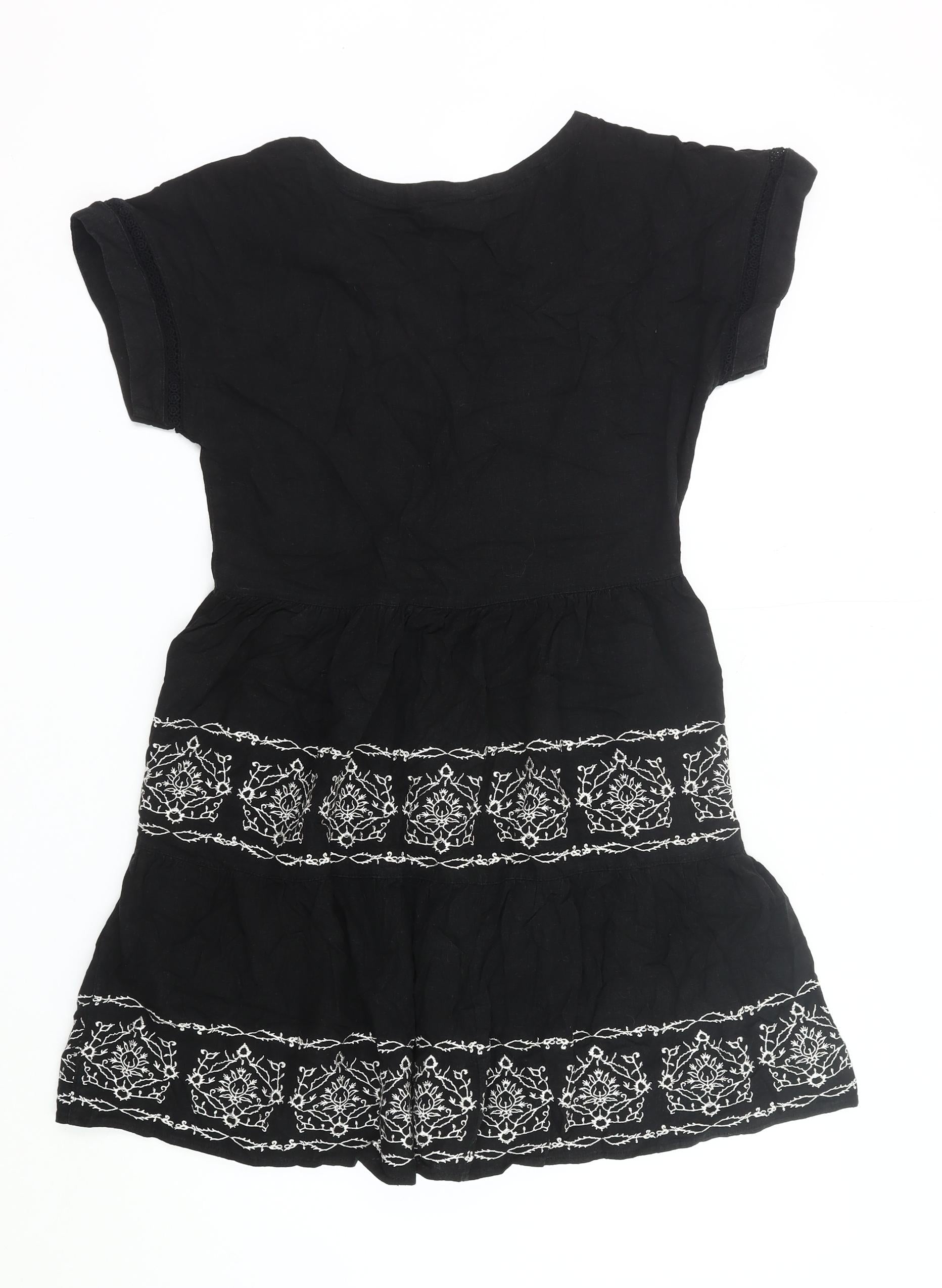 Next Womens Black Embroidered Linen Blend Shirt Dress Size 10