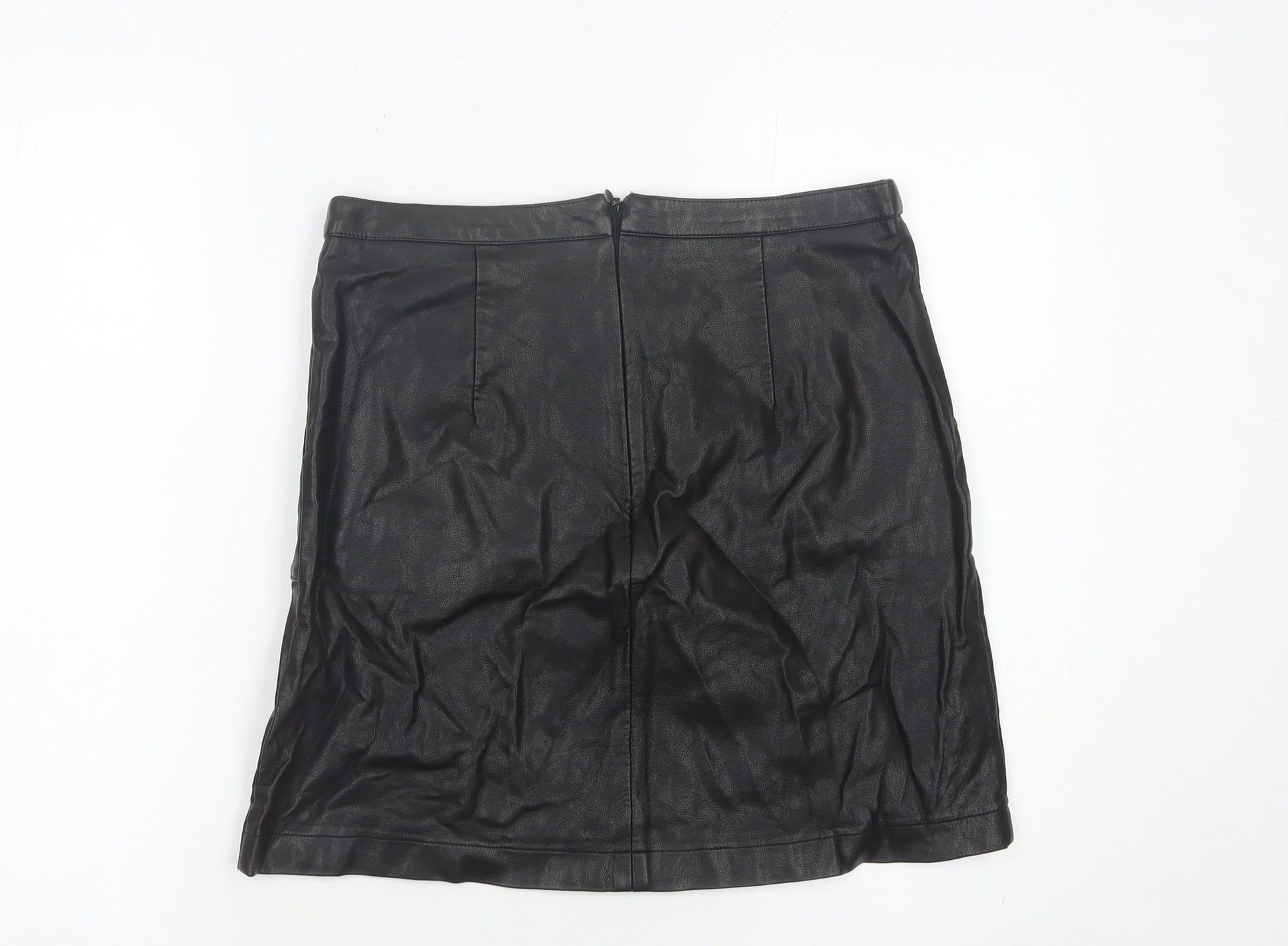 Next Womens Black Faux Leather Pencil Skirt Size 8 Knee Length