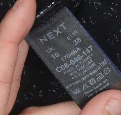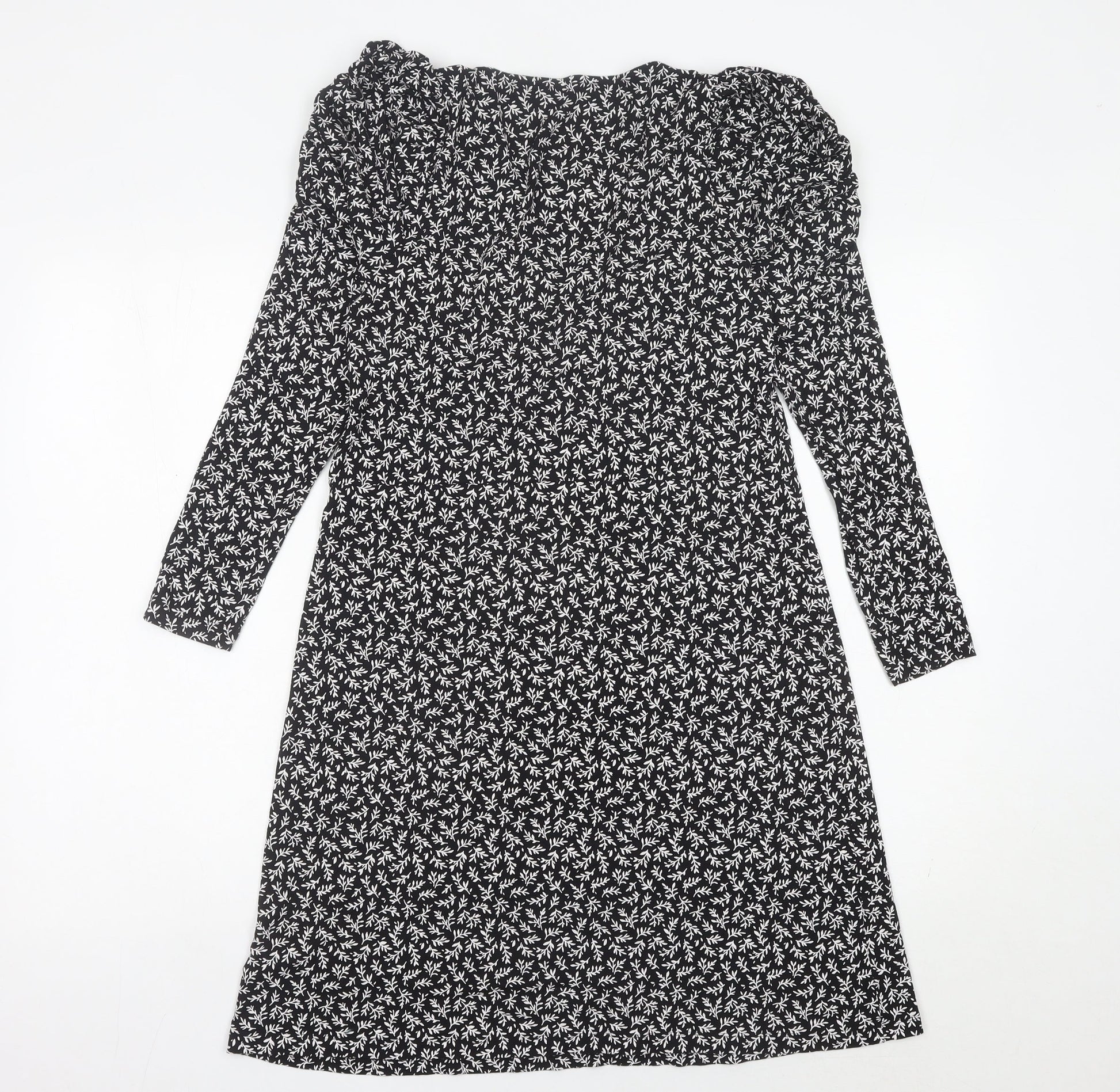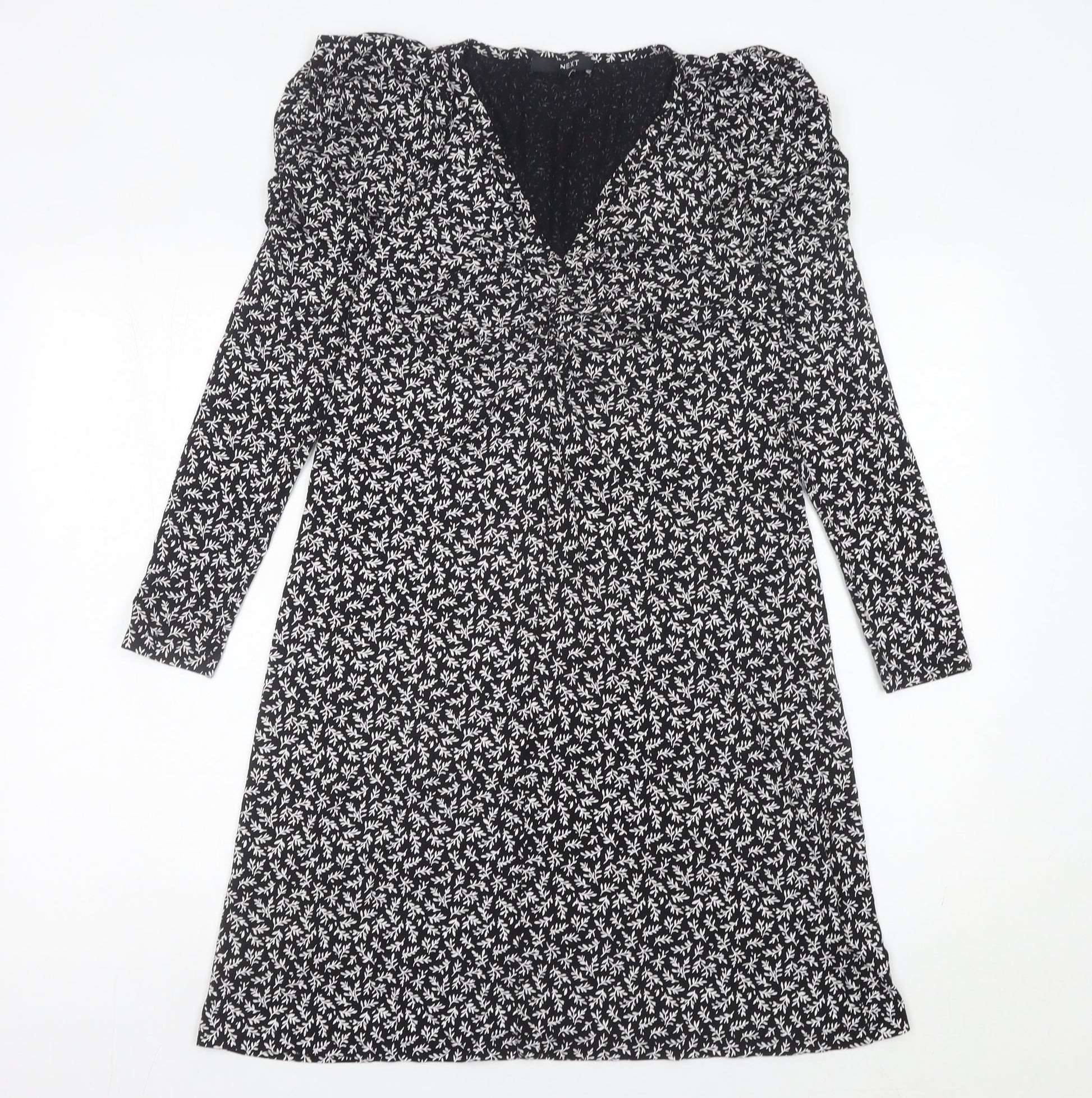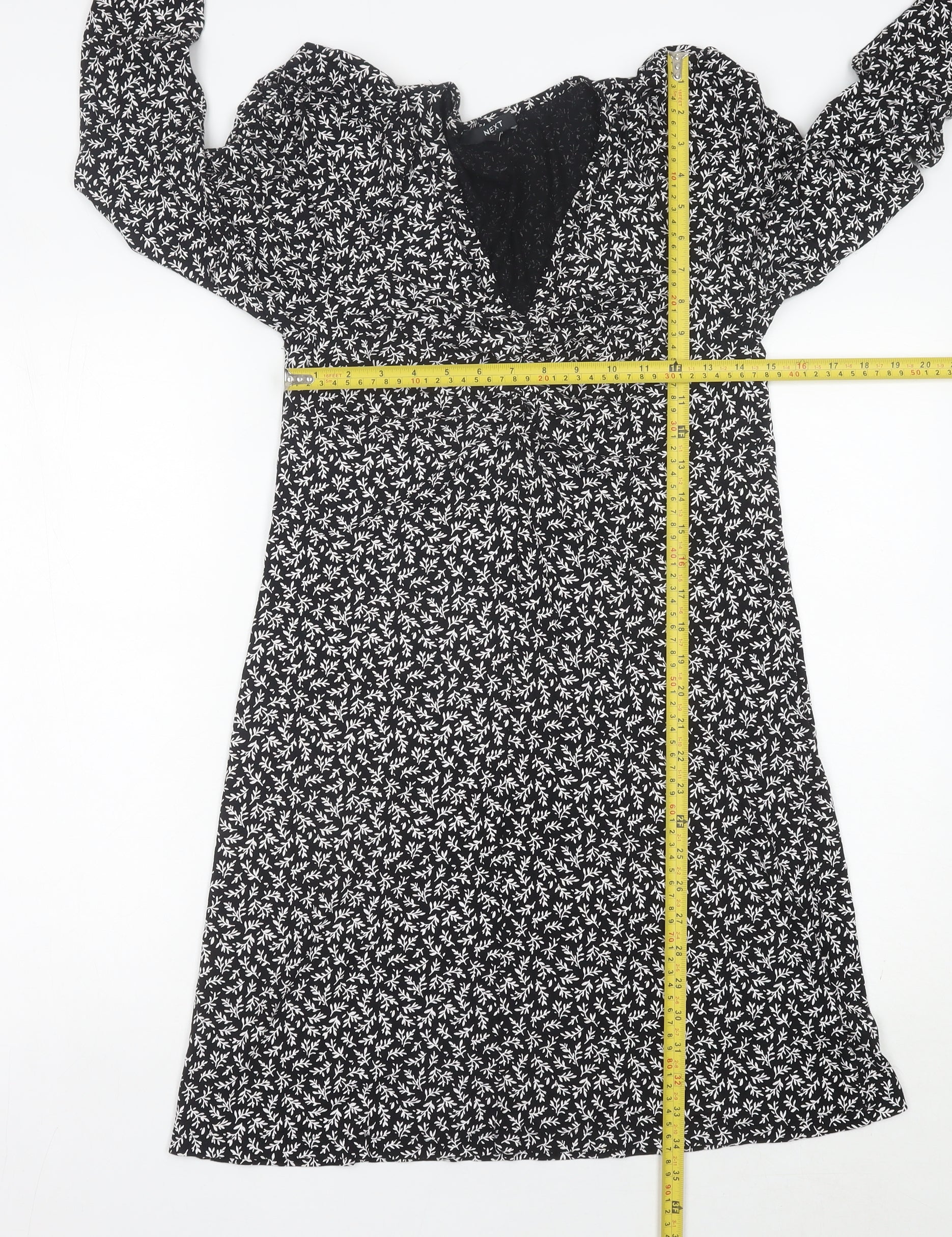 Next Womens Black Floral A-Line Jersey Dress Size 10 V-Neck Long Sleeve