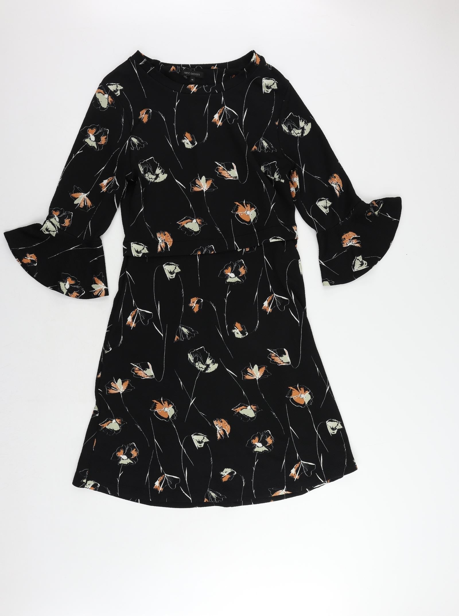 NEXT Womens Black Floral Polyester A-Line Size 10 Boat Neck Pullover