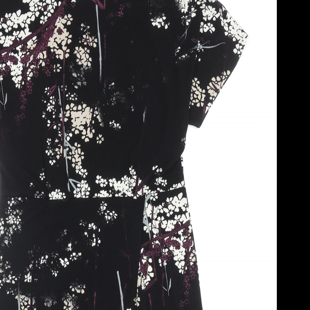 NEXT Womens Black Floral Polyester Trapeze & Swing Size 10 Round Neck Pullover