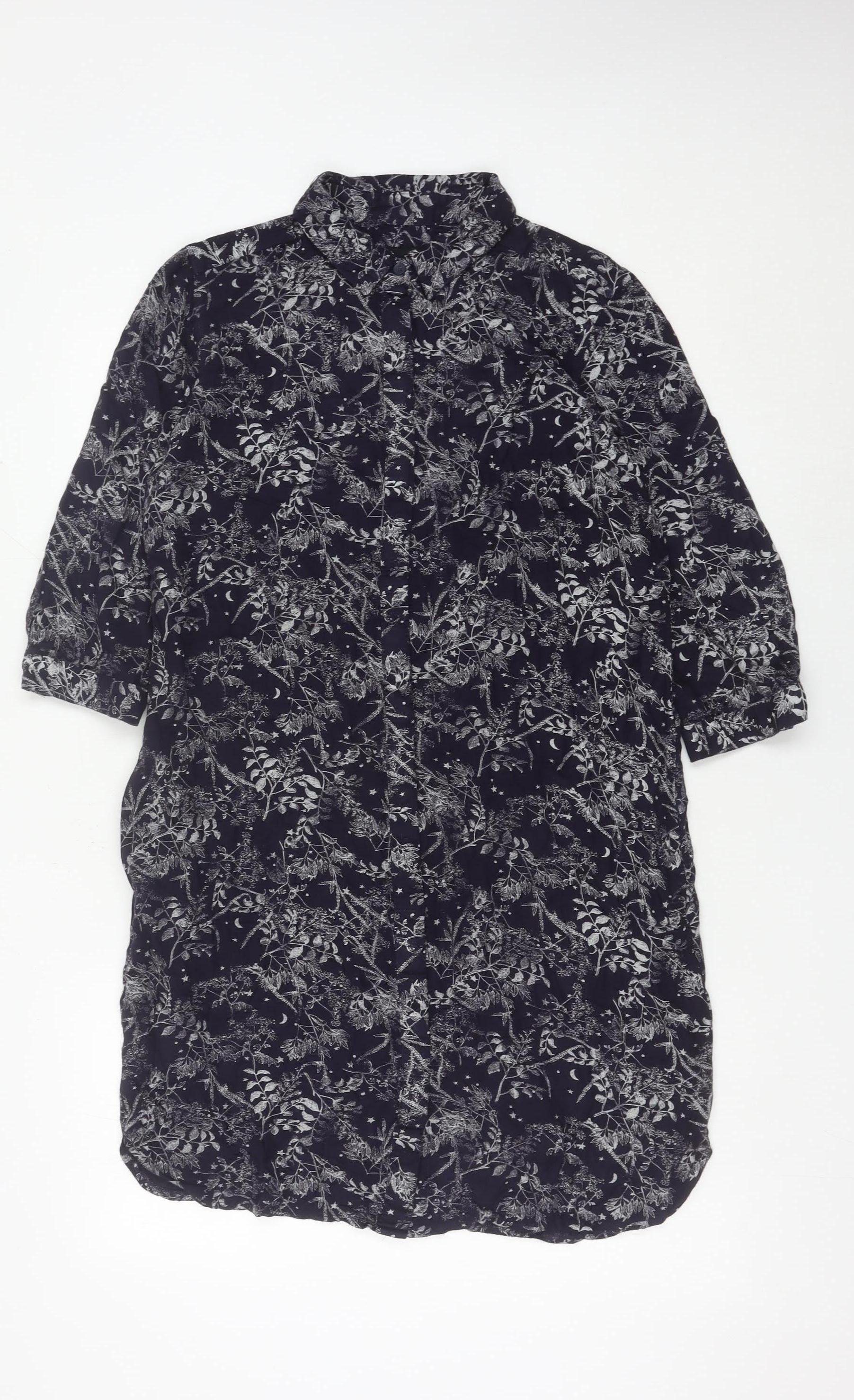 Next Womens Black Floral Shirt Dress Size 10 Collared 3/4 Sleeve