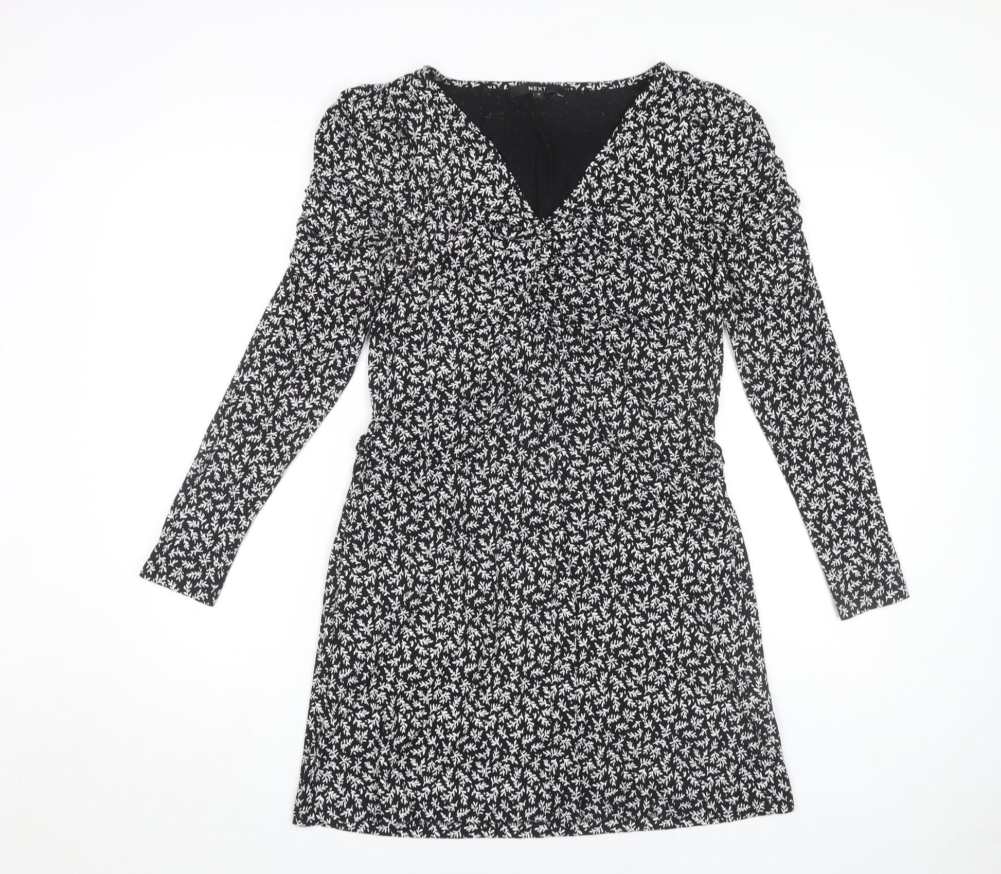 Next Women's Black Floral Short Jersey Dress Size 10