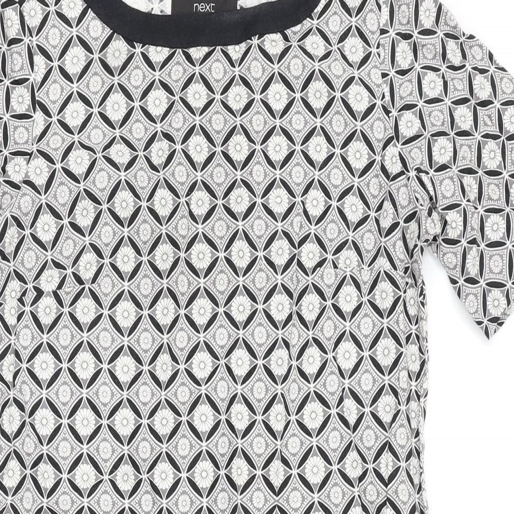 NEXT Womens Black Geometric 100% Cotton Shift Size 6 Round Neck Pullover