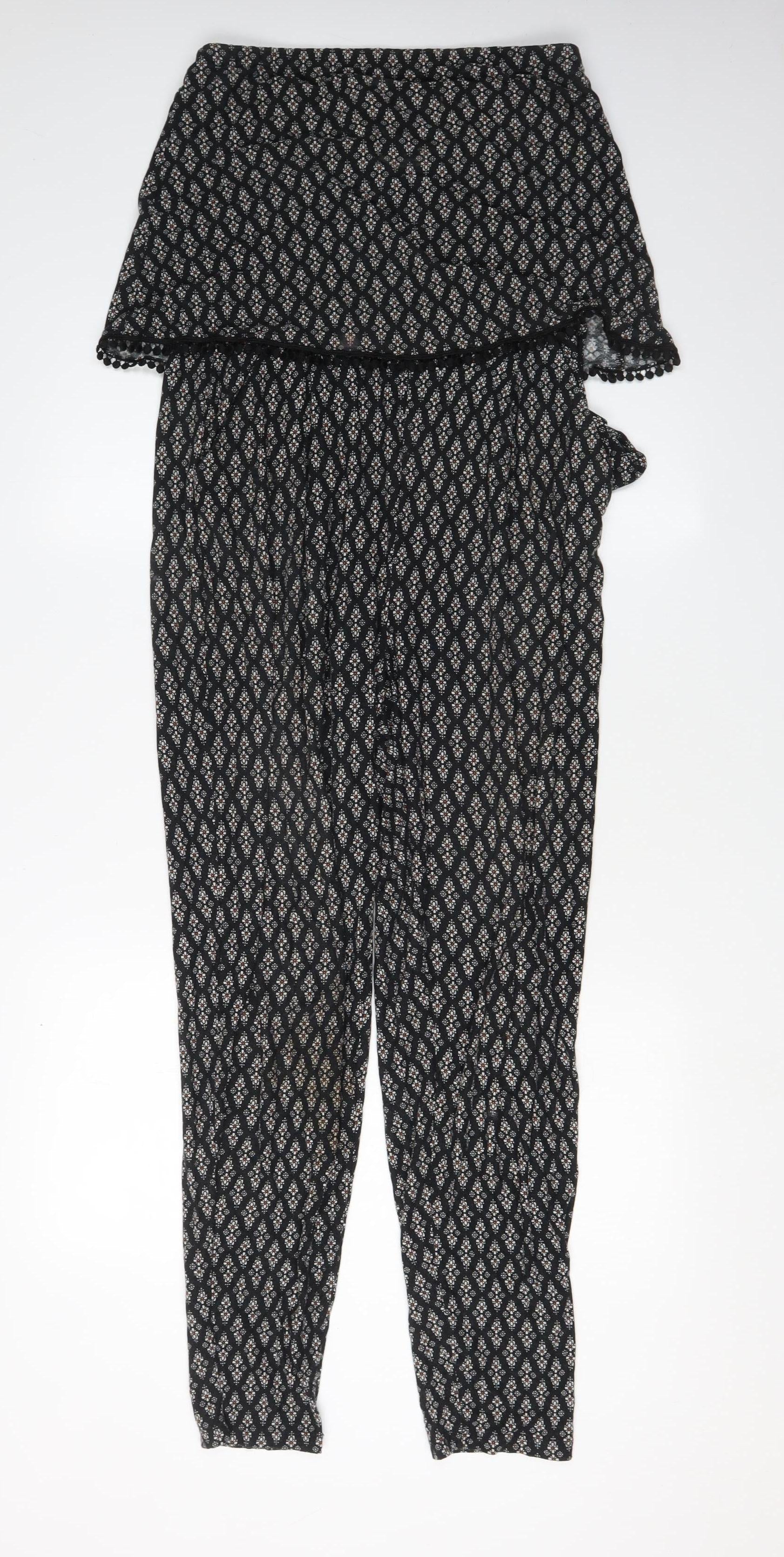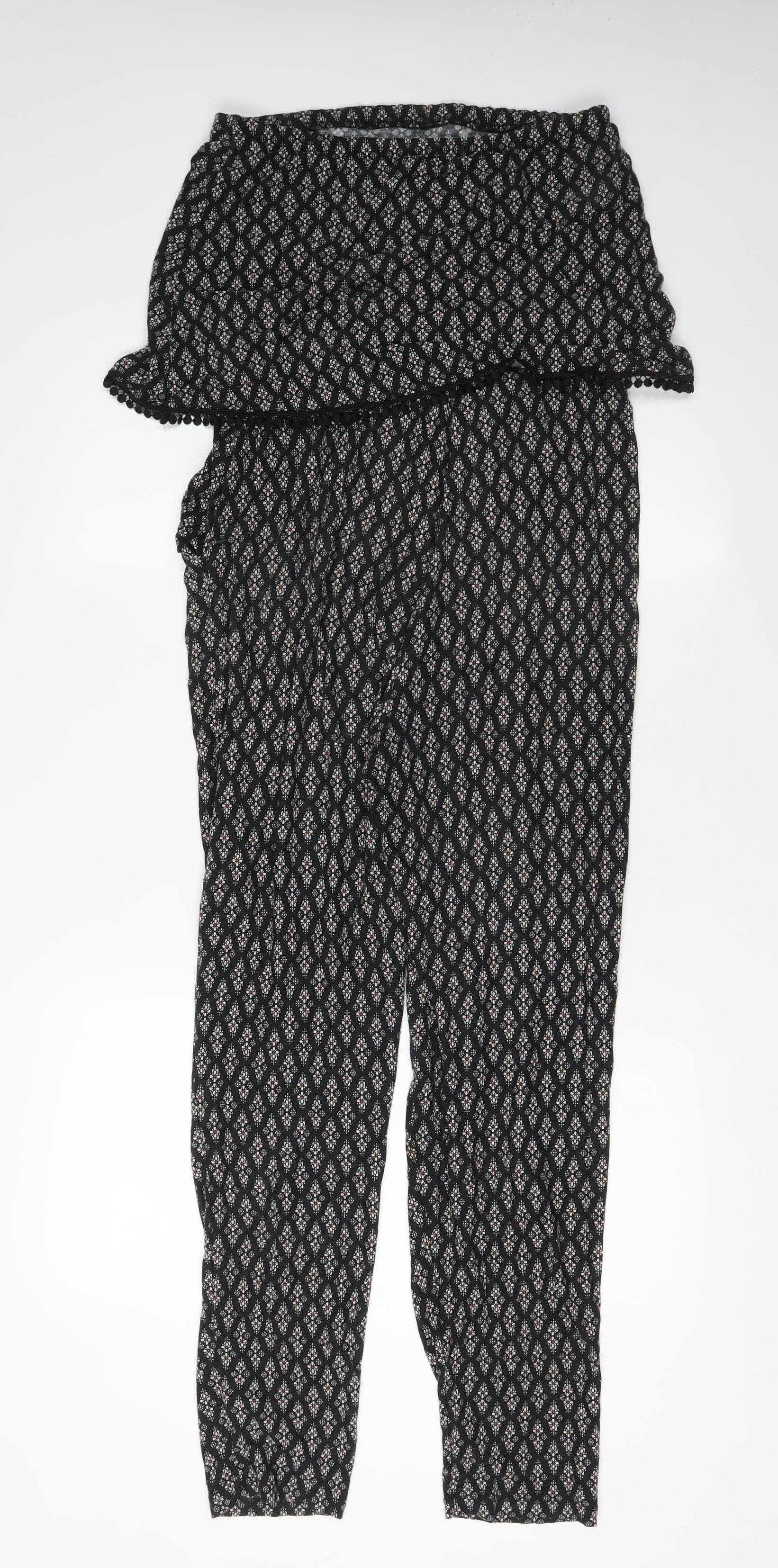 Next Women's Black Geometric Jersey Jumpsuit Size 10