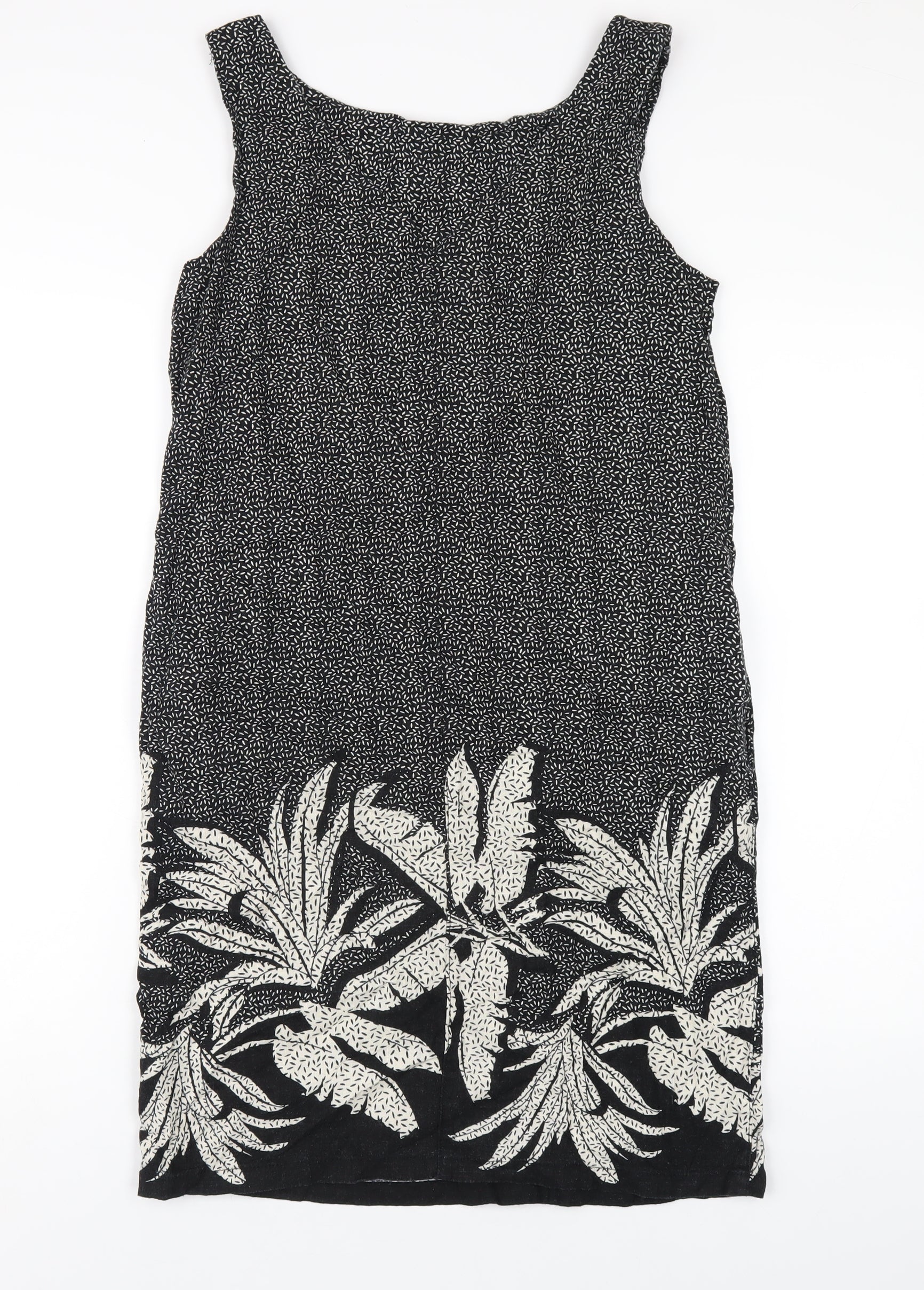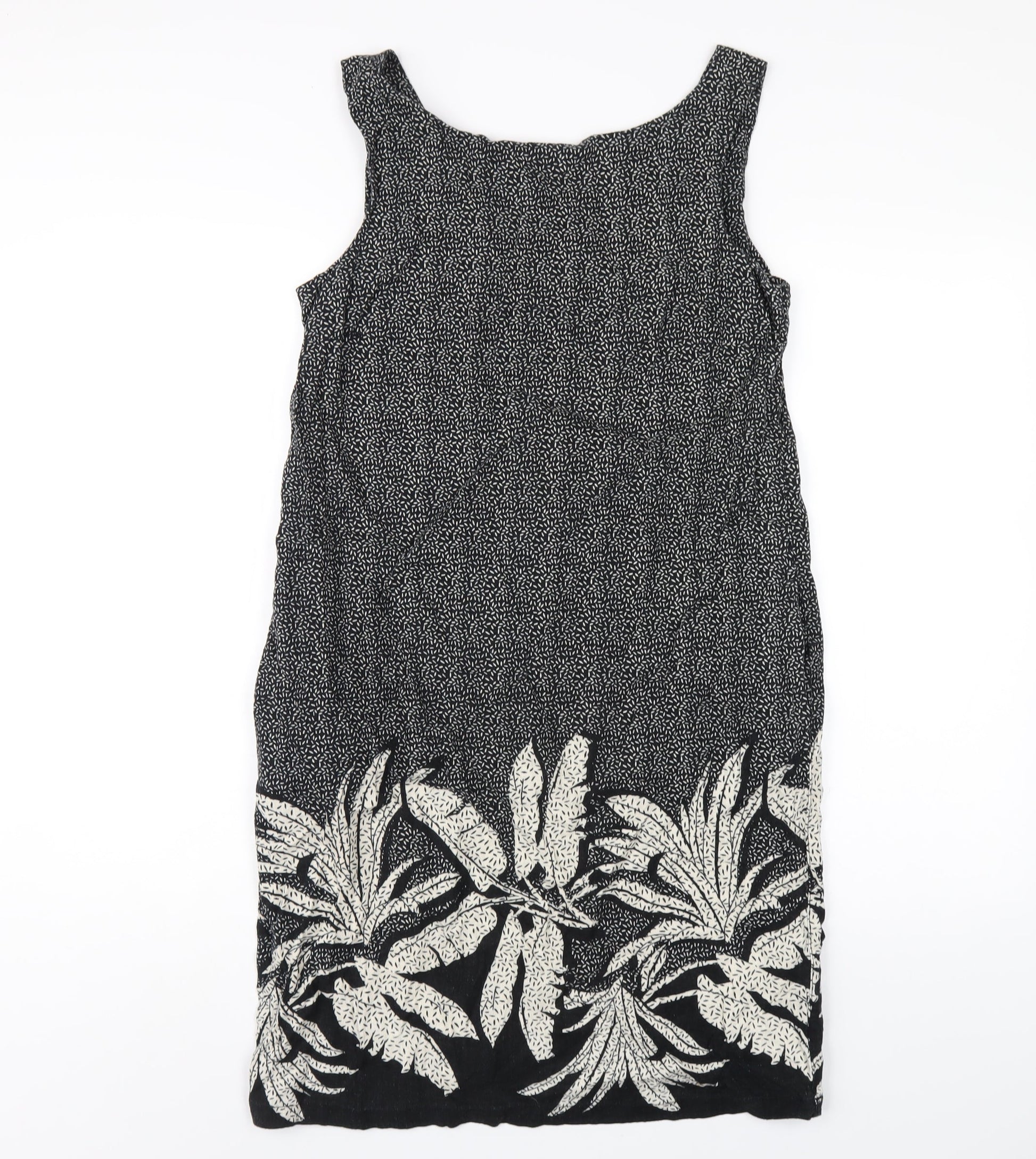NEXT Womens Black Geometric Linen Tank Dress Size 8 Scoop Neck Pullover