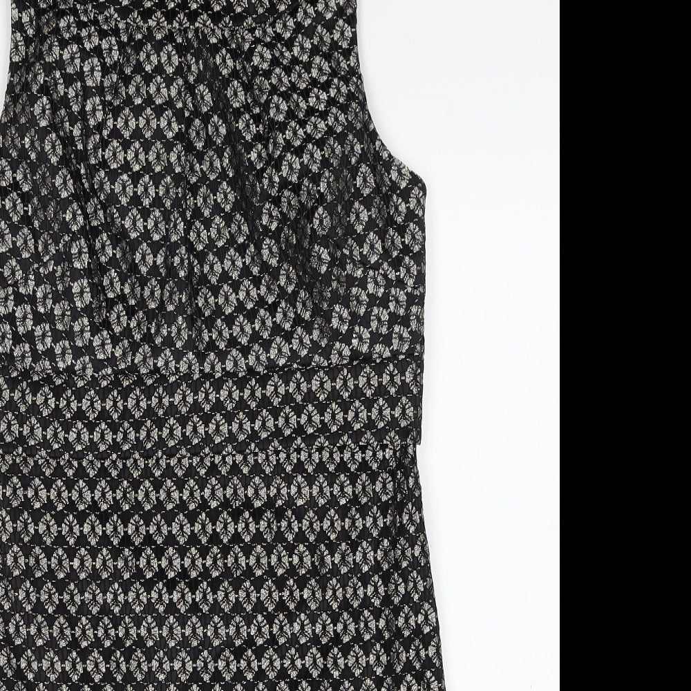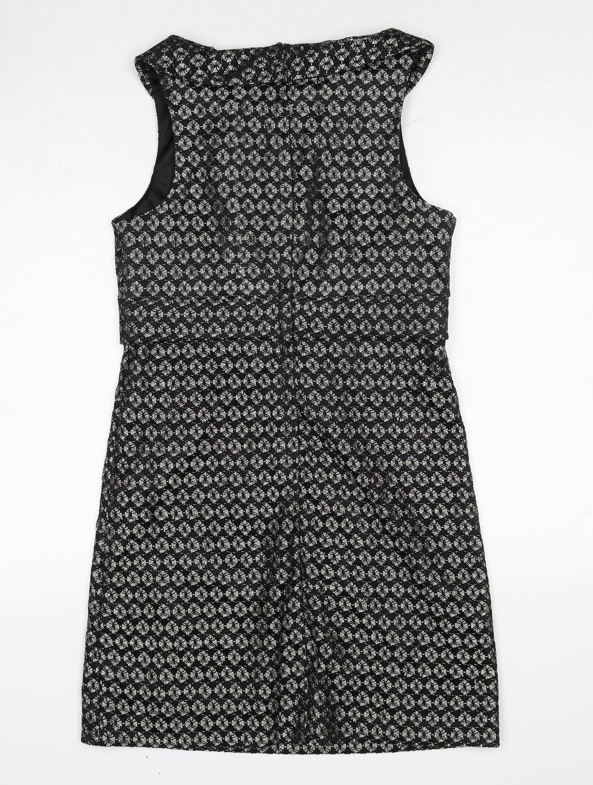 NEXT Womens Black Geometric Nylon Shift Size 10 Round Neck Zip