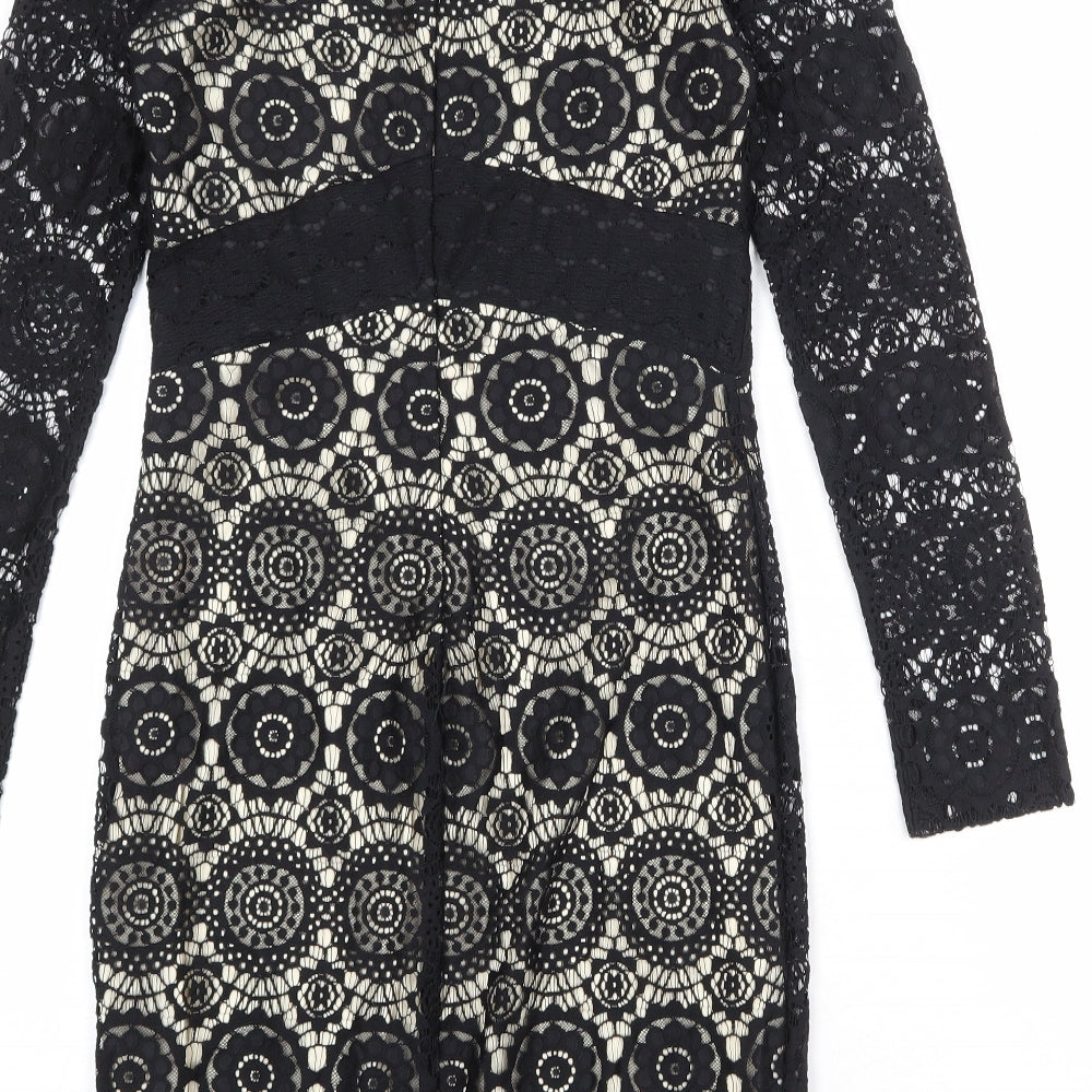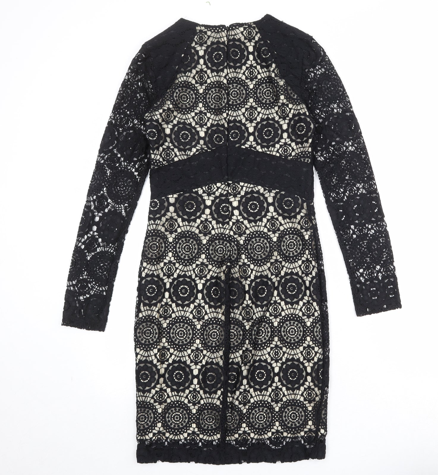 NEXT Womens Black Geometric Nylon Shift Size 6 Round Neck Zip