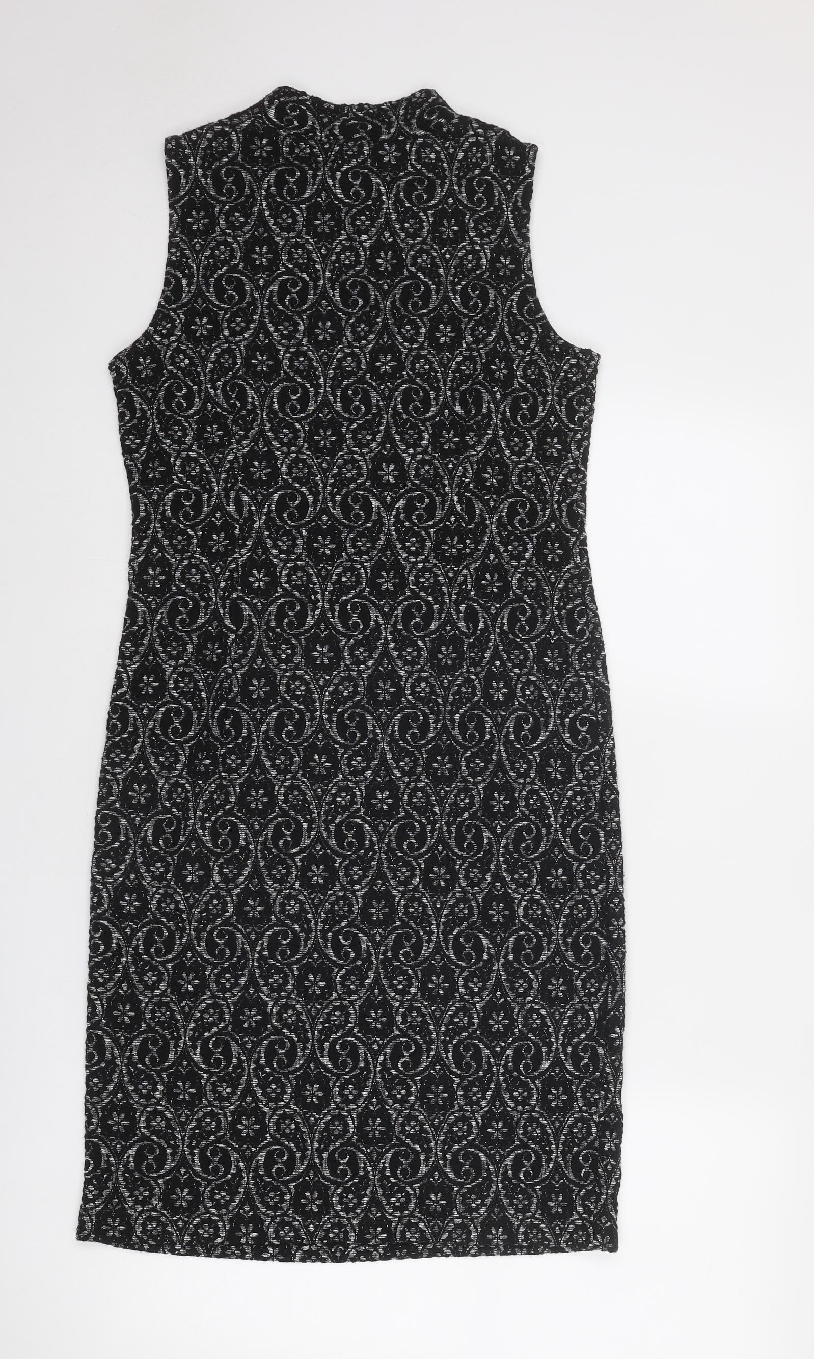 NEXT Womens Black Geometric Polyester A-Line Size 10 Round Neck Pullover