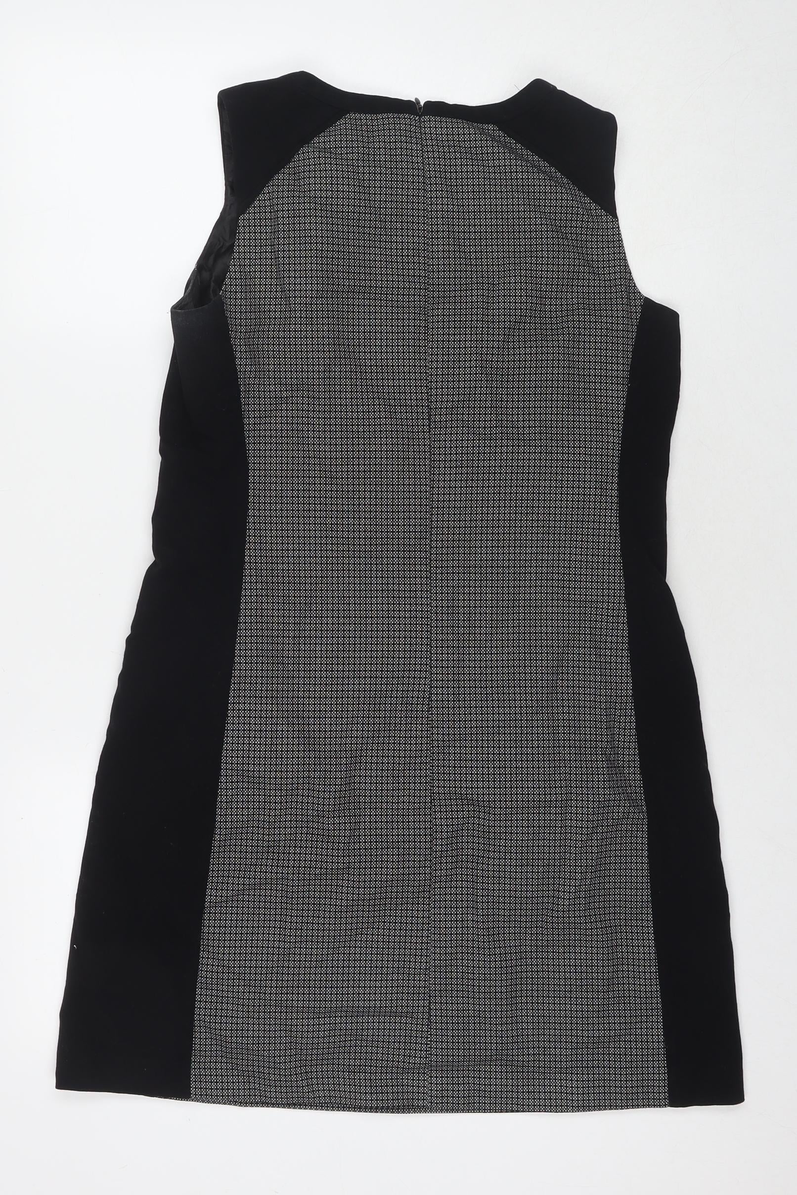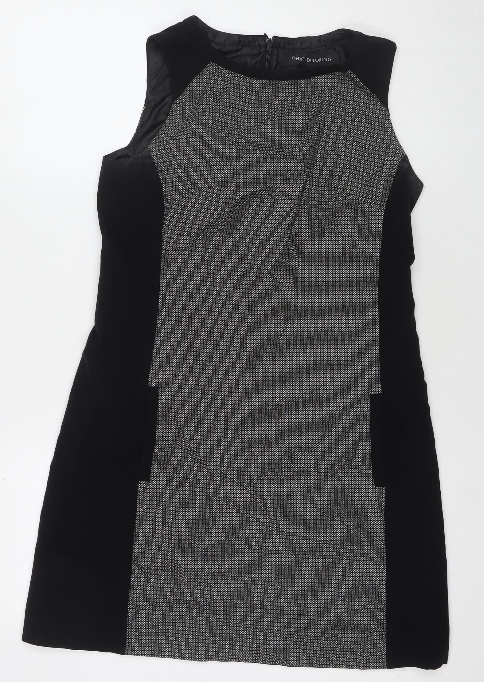 NEXT Womens Black Geometric Polyester A-Line Size 10 Round Neck Zip