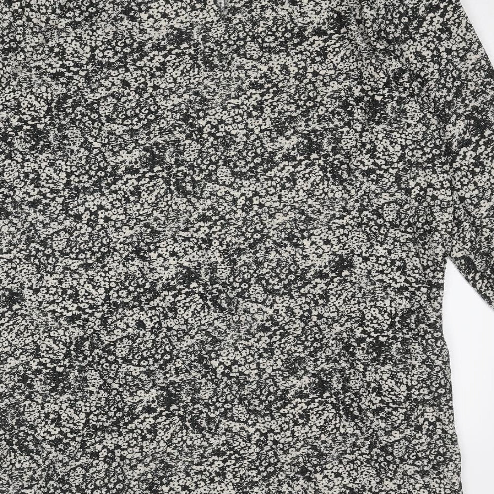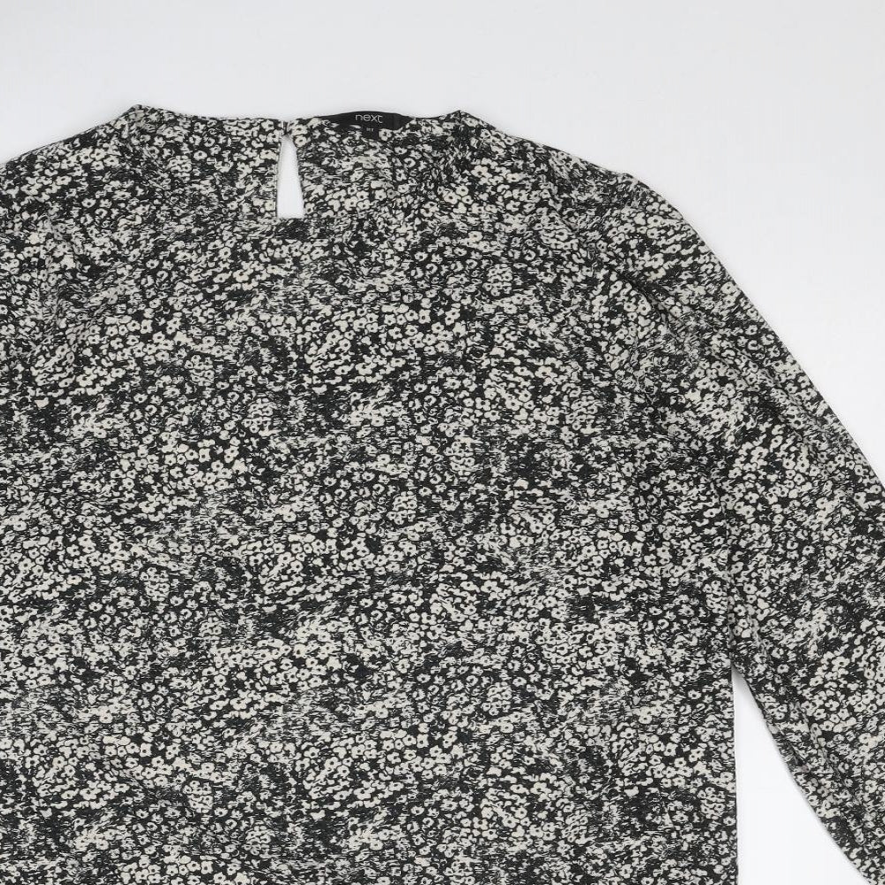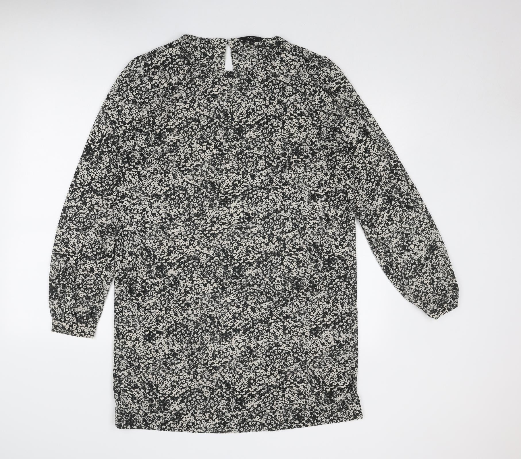 NEXT Womens Black Geometric Polyester A-Line Size 16 Round Neck Button