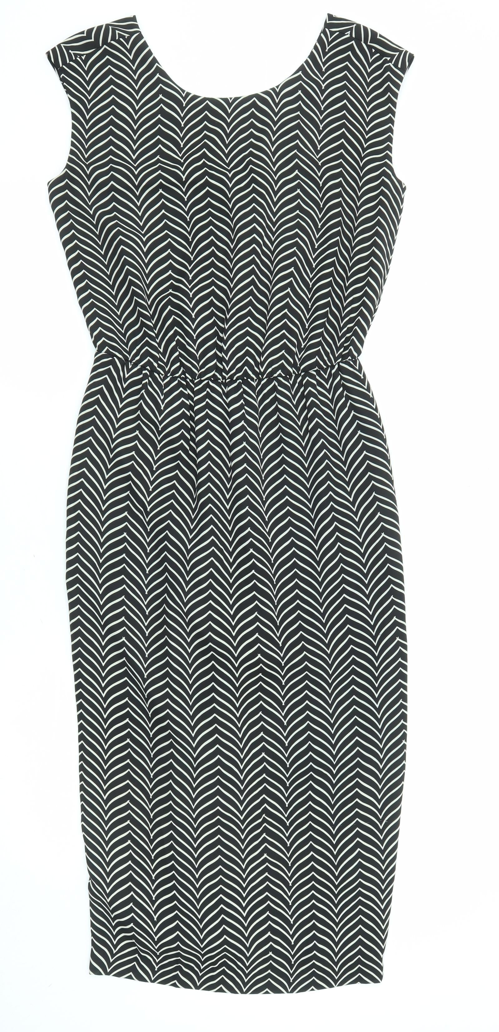NEXT Womens Black Geometric Polyester A-Line Size 6 Round Neck Pullover