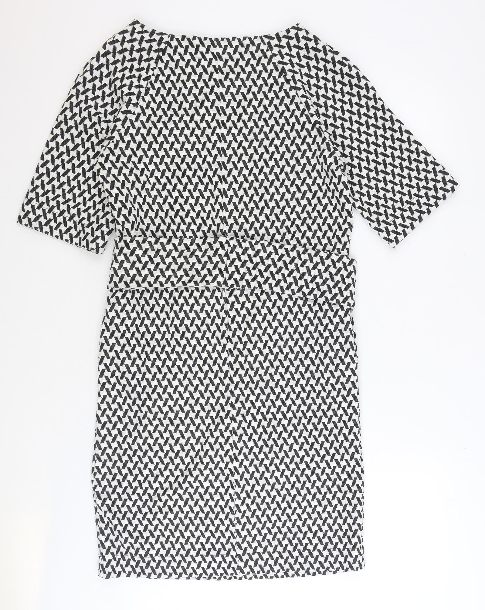 NEXT Womens Black Geometric Polyester A-Line Size 8 Boat Neck Pullover
