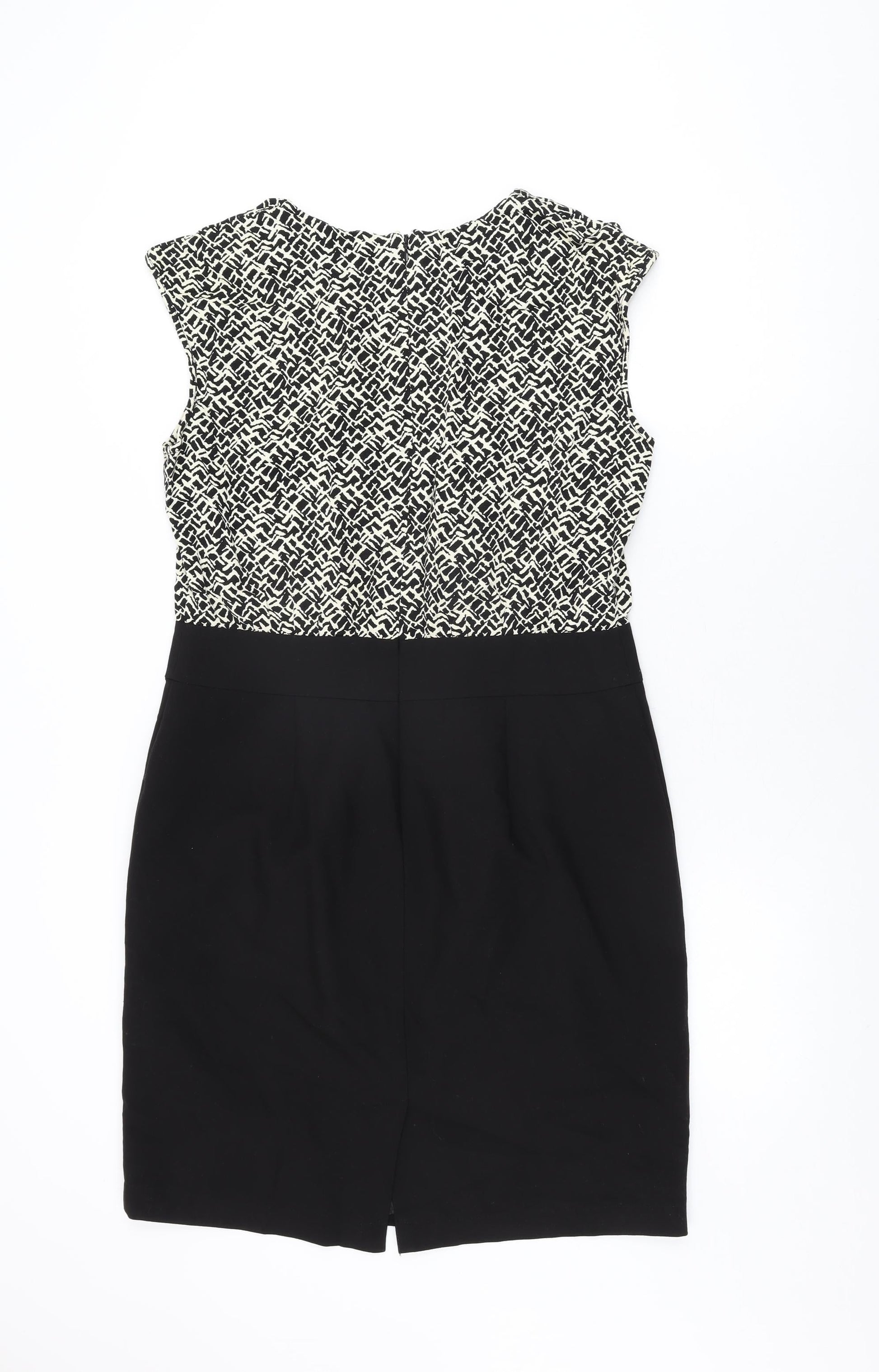 NEXT Womens Black Geometric Polyester Bodycon Size 14 Round Neck Zip