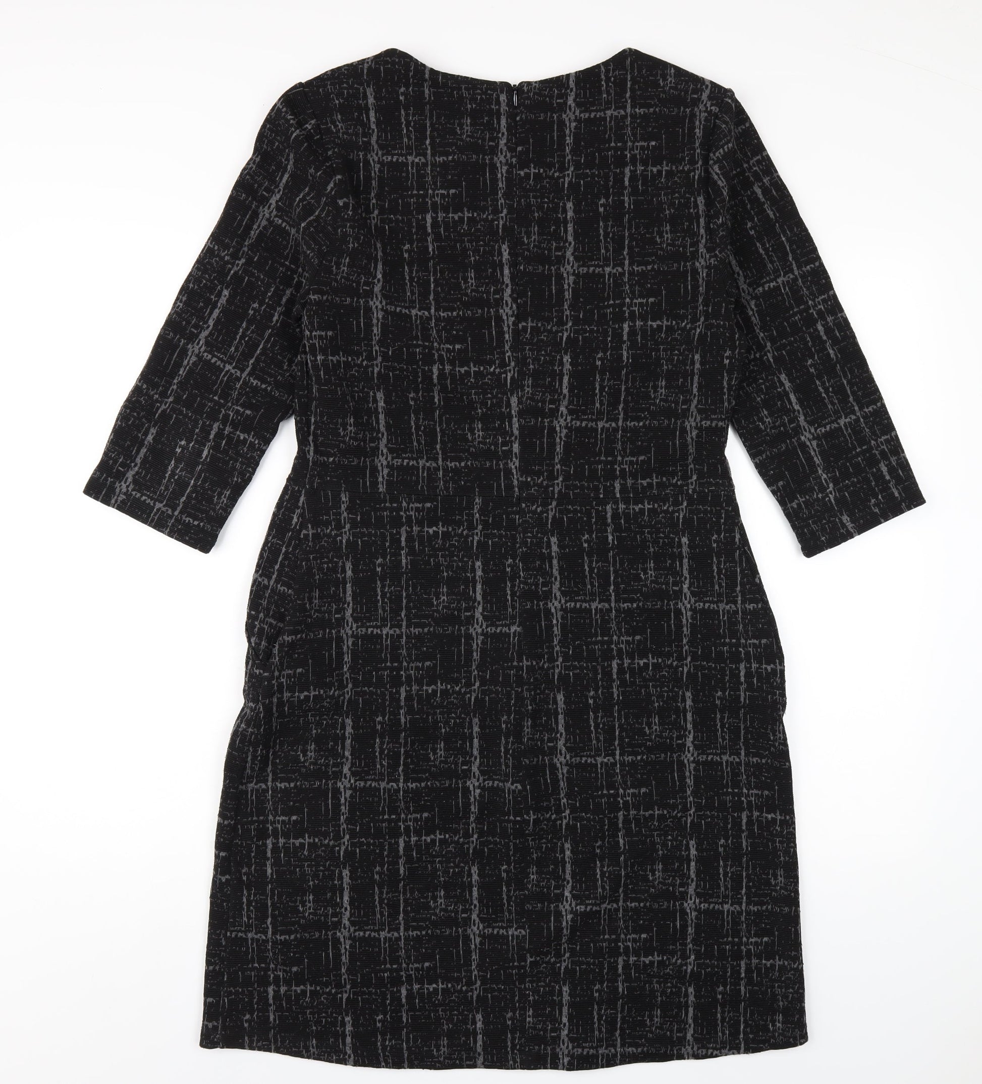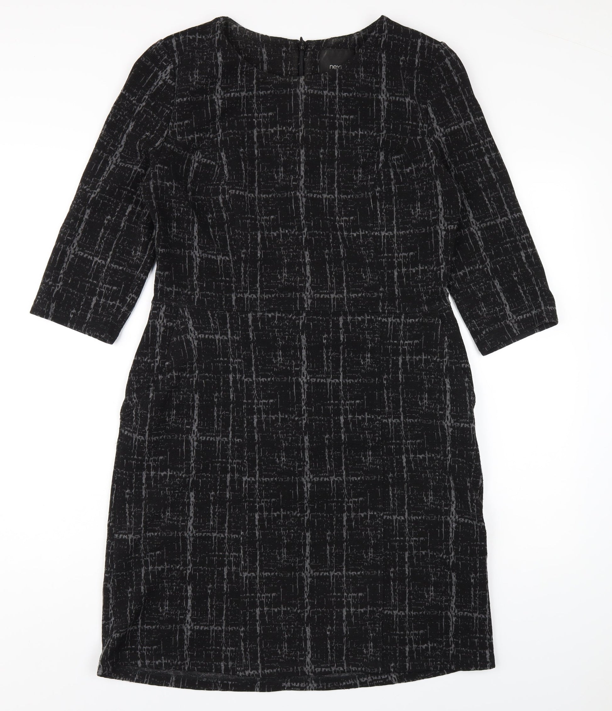 NEXT Womens Black Geometric Polyester Pencil Dress Size 12 Round Neck Zip