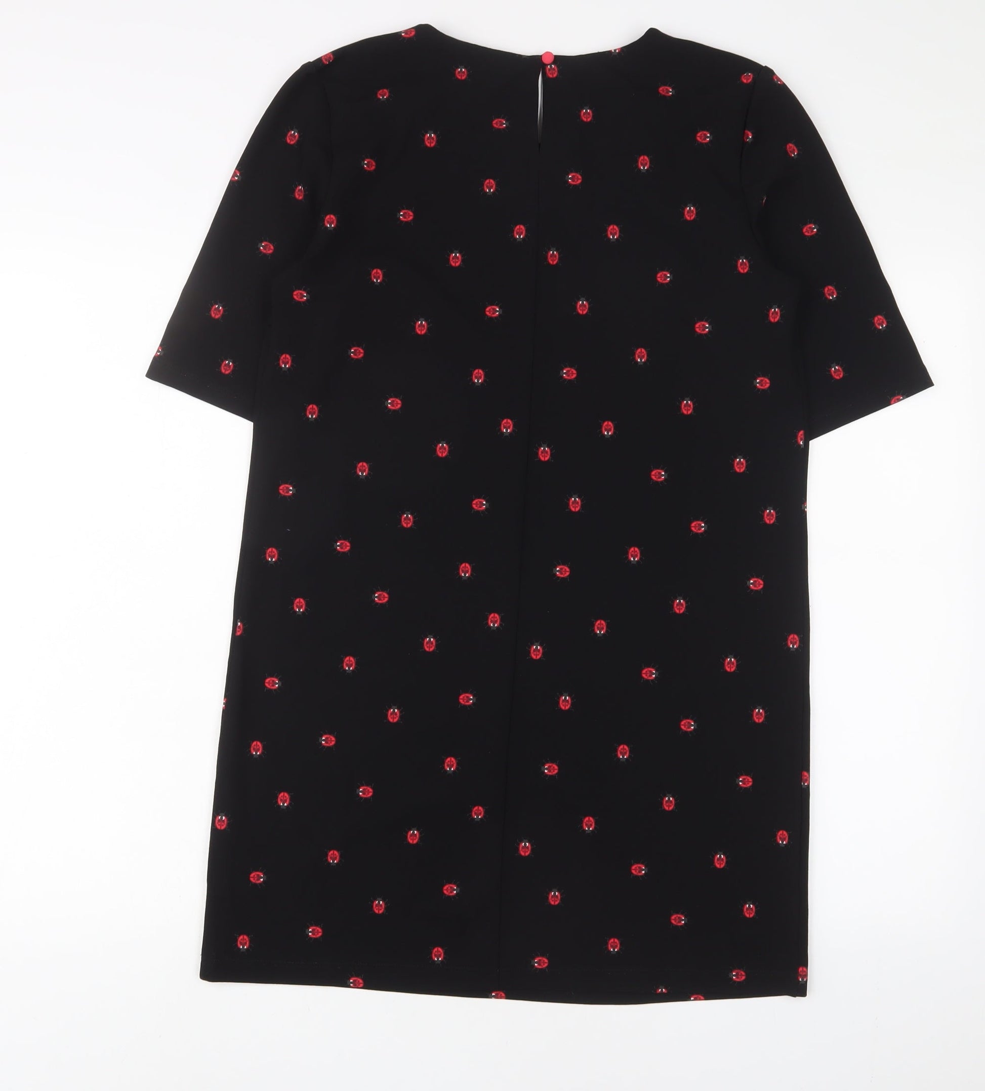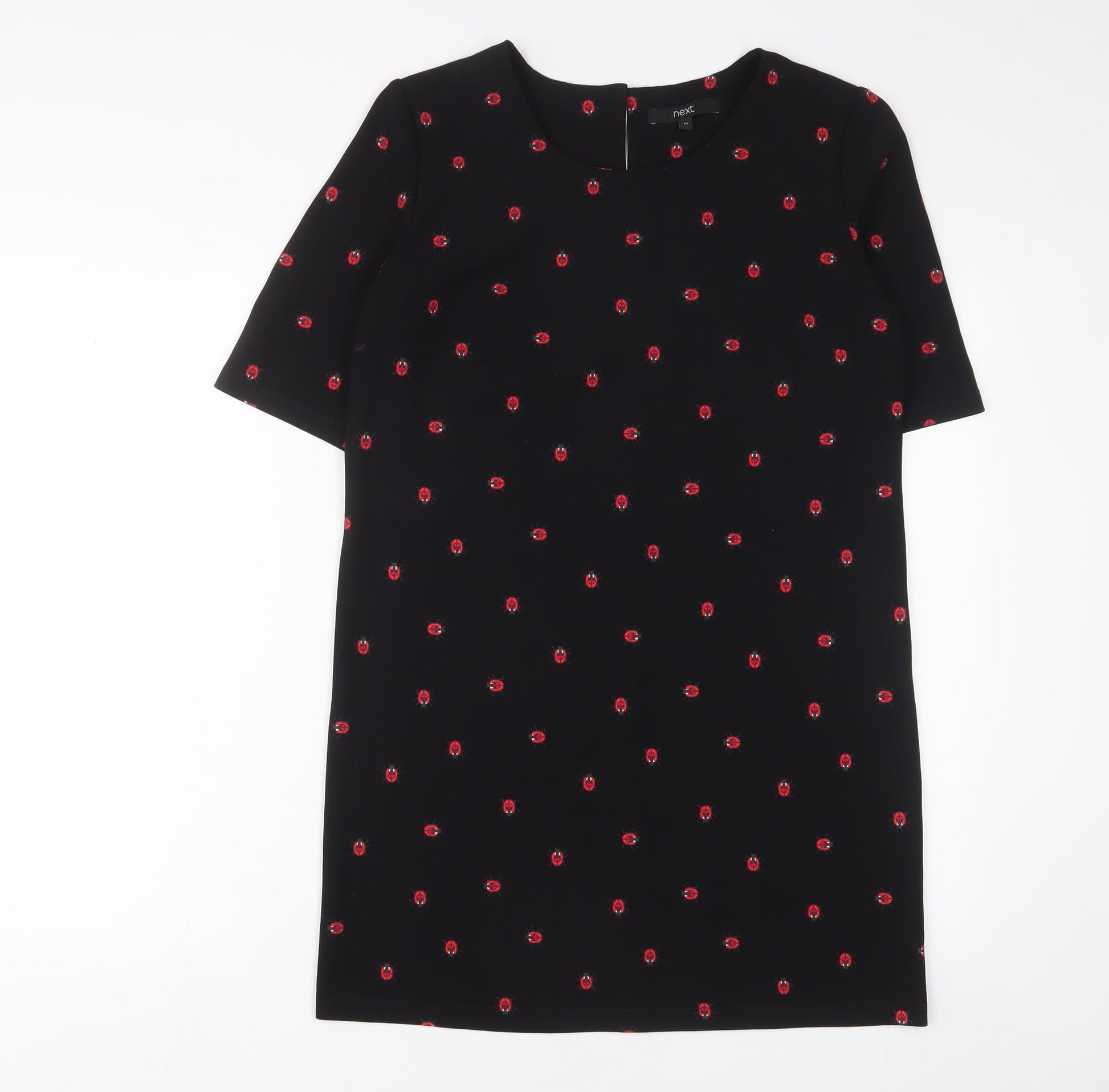 NEXT Womens Black Geometric Polyester Sheath Size 10 Boat Neck Button - Ladybirds