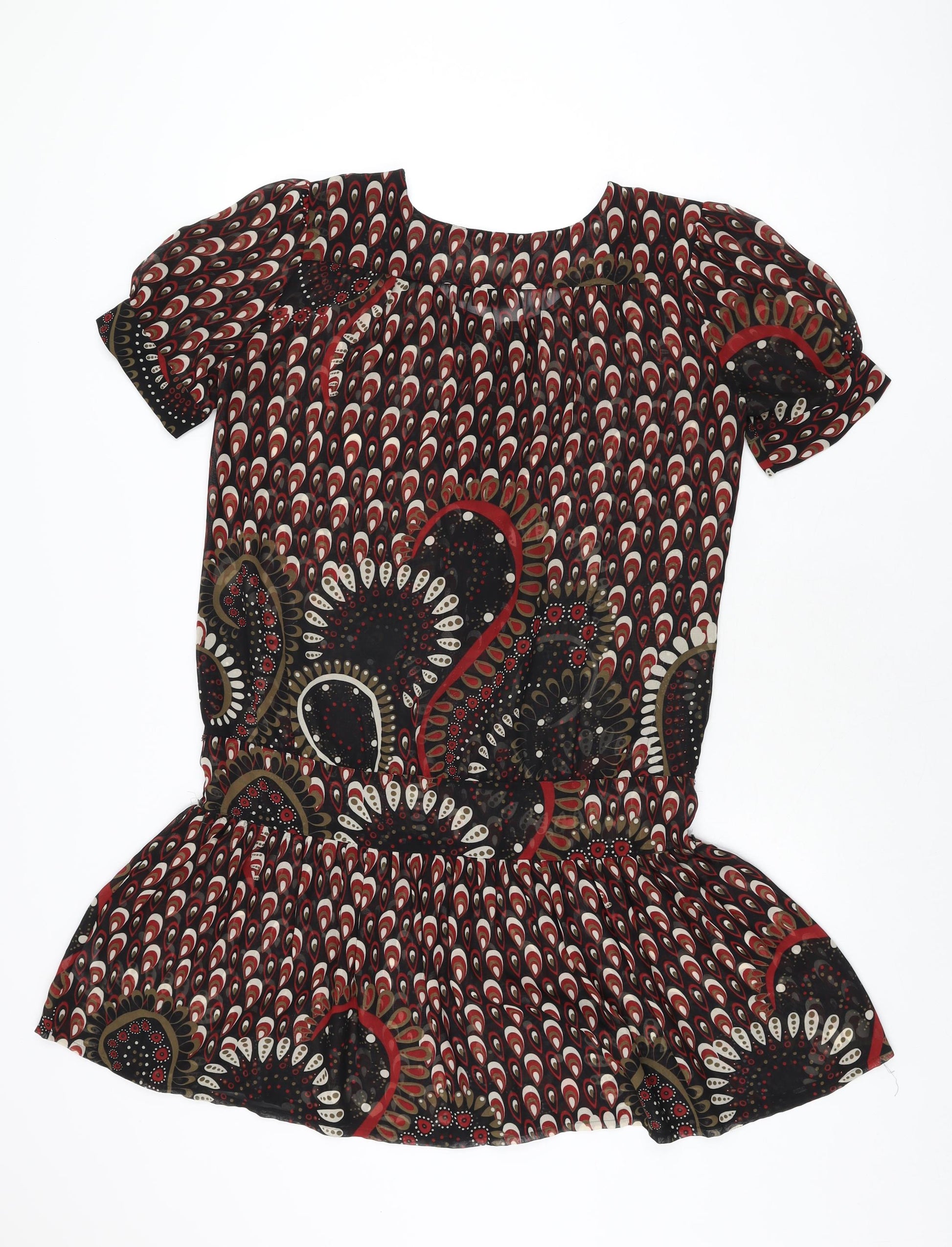 NEXT Womens Black Geometric Polyester Shift Size 10 Round Neck Button
