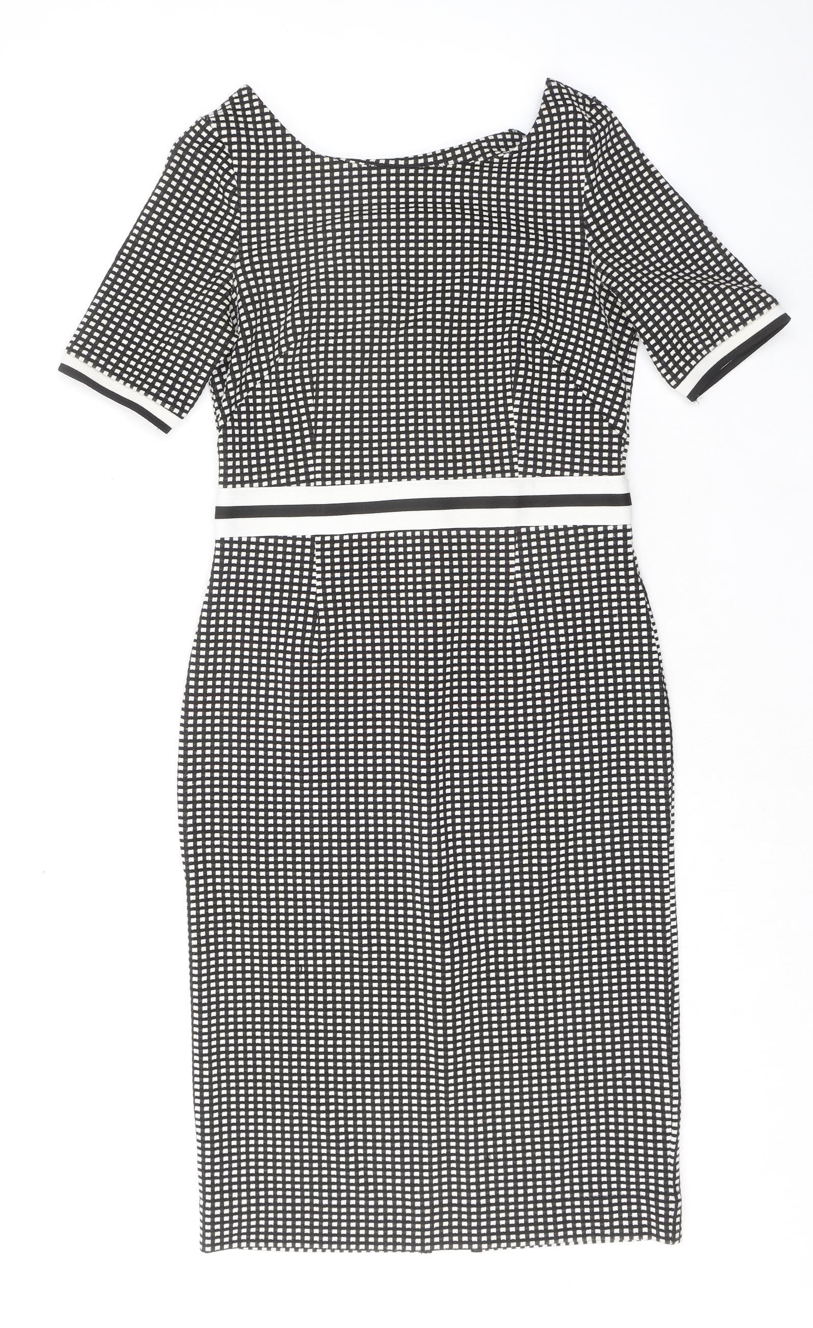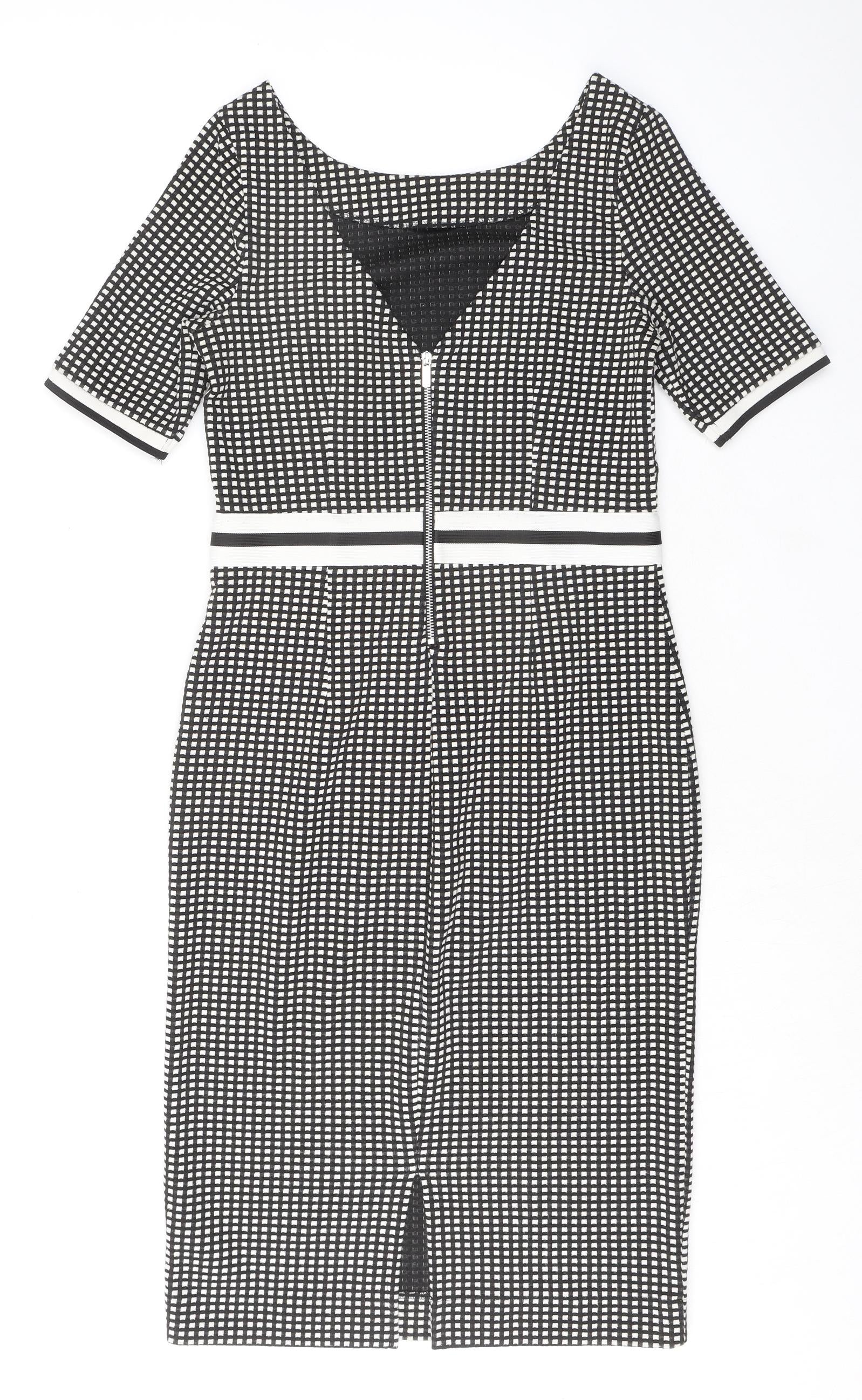 NEXT Womens Black Geometric Polyester Shift Size 8 Round Neck Zip