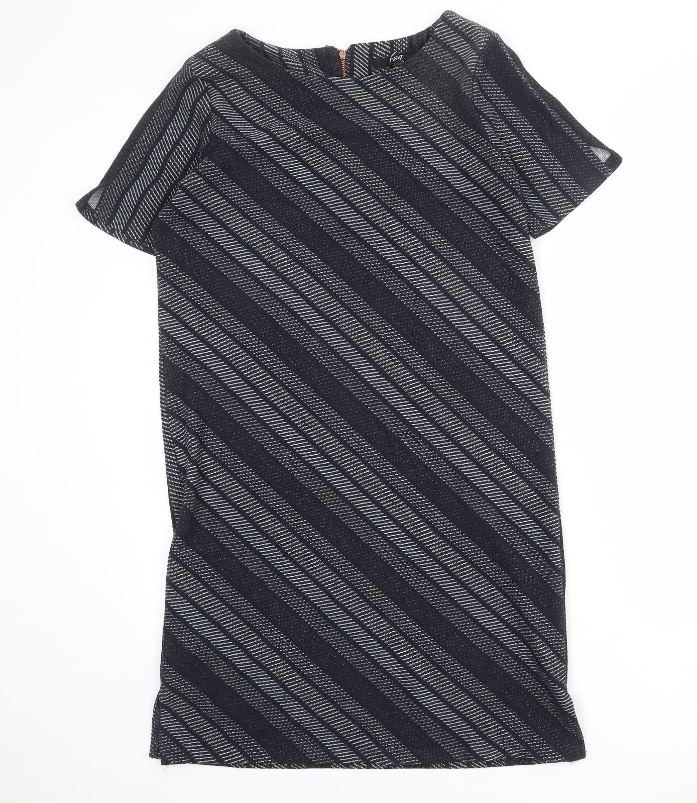 NEXT Womens Black Geometric Polyester T-Shirt Dress Size 10 Round Neck Zip