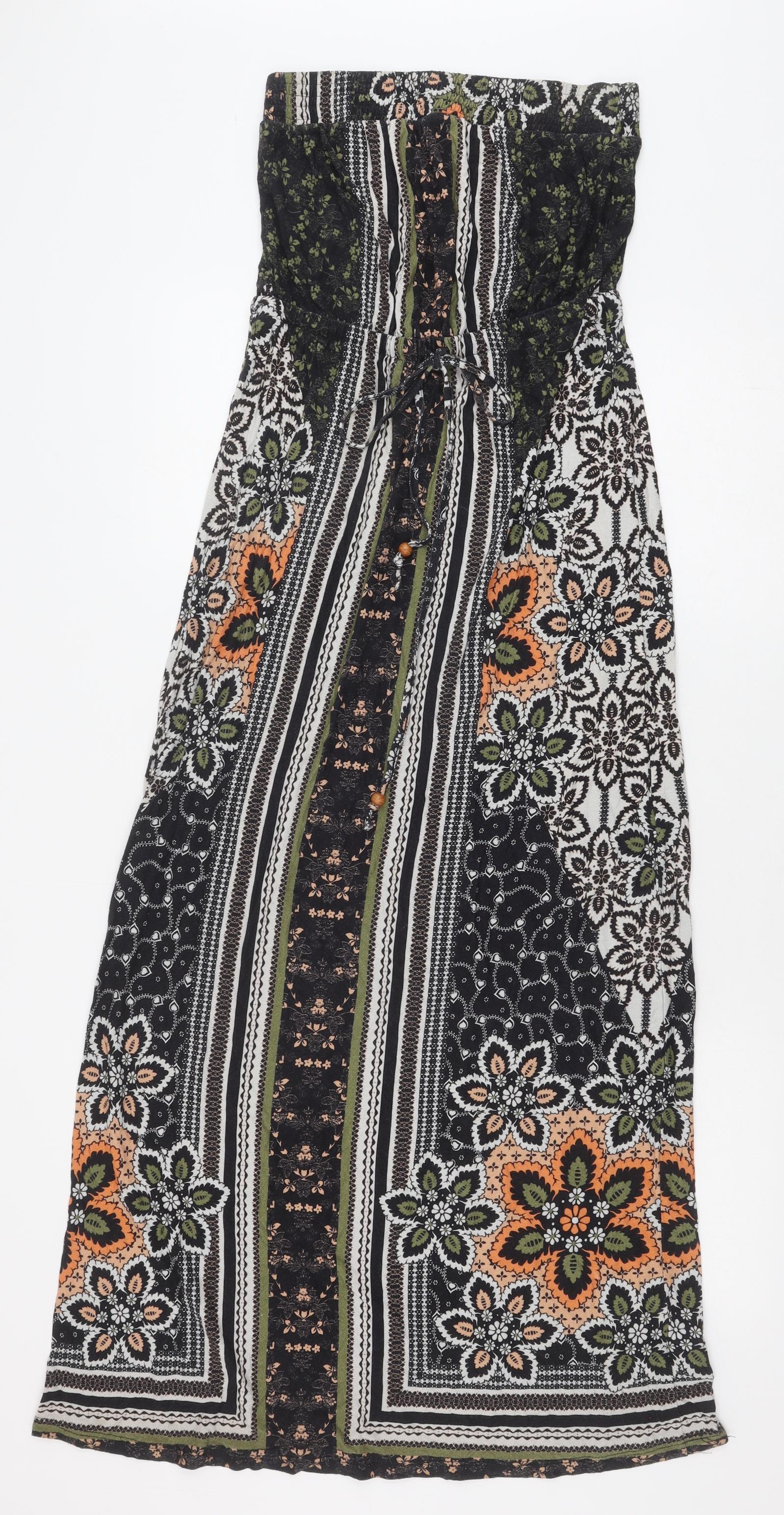 NEXT Womens Black Geometric Viscose Maxi Size 6 Off the Shoulder Drawstring