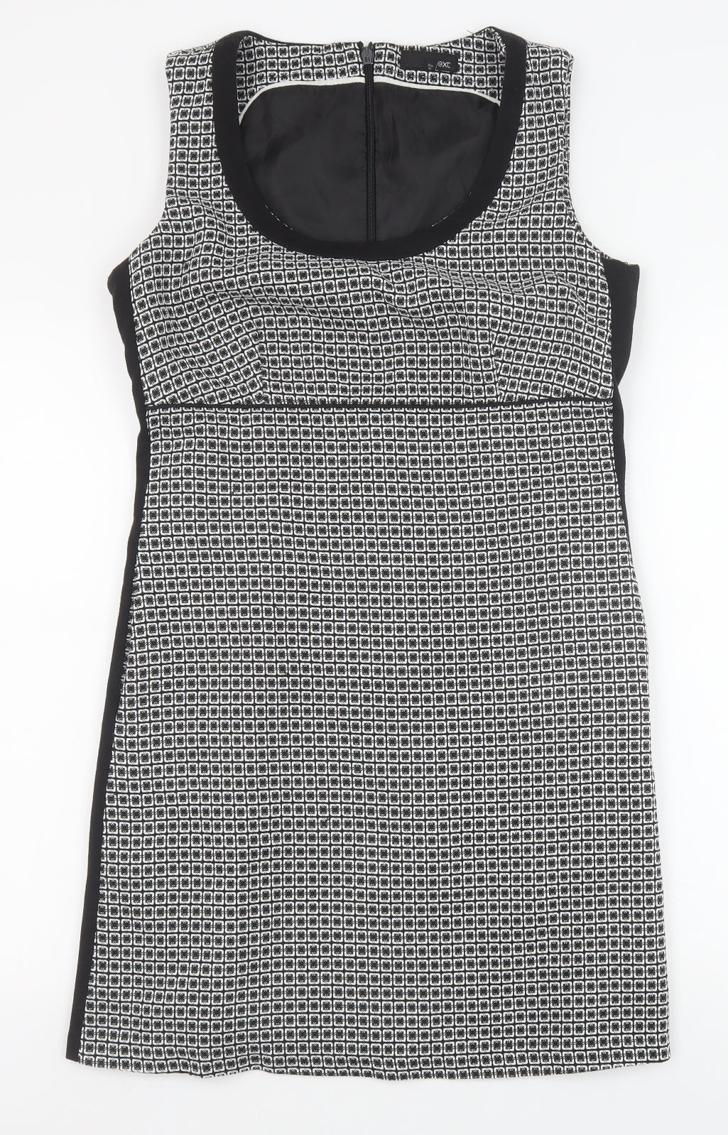 NEXT Womens Black Geometric Viscose Shift Size 12 Scoop Neck Zip