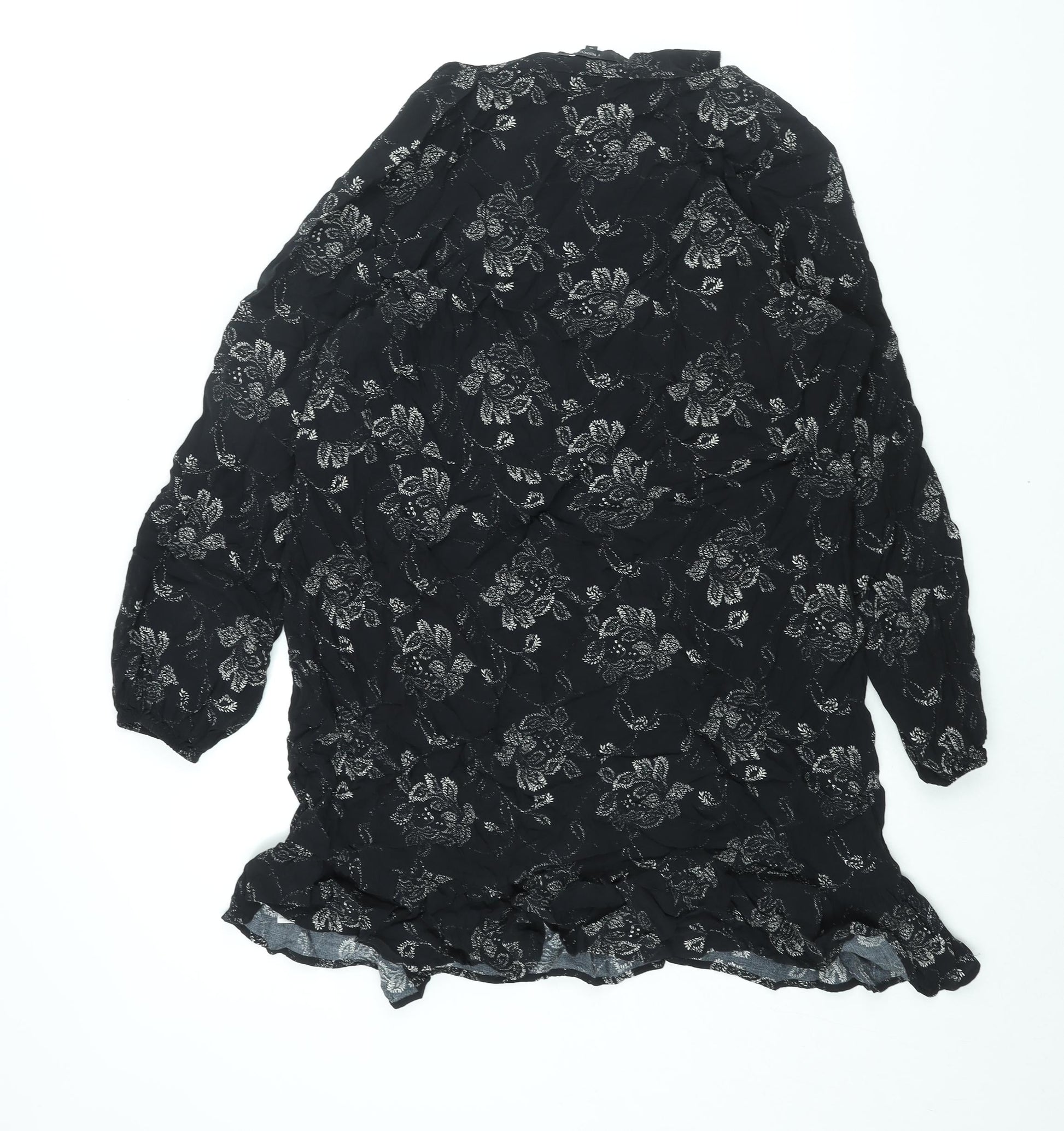 NEXT Womens Black Geometric Viscose Shift Size 16 V-Neck Pullover