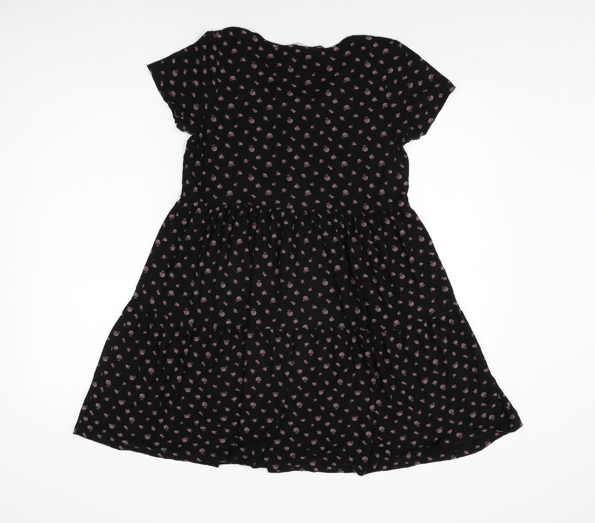 NEXT Womens Black Geometric Viscose Shift Size 6 Round Neck Button