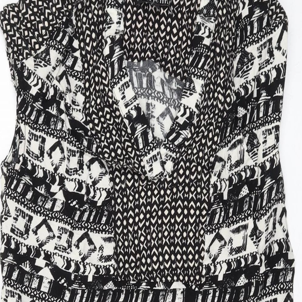 NEXT Womens Black Geometric Viscose Tank Dress Size 6 V-Neck Pullover